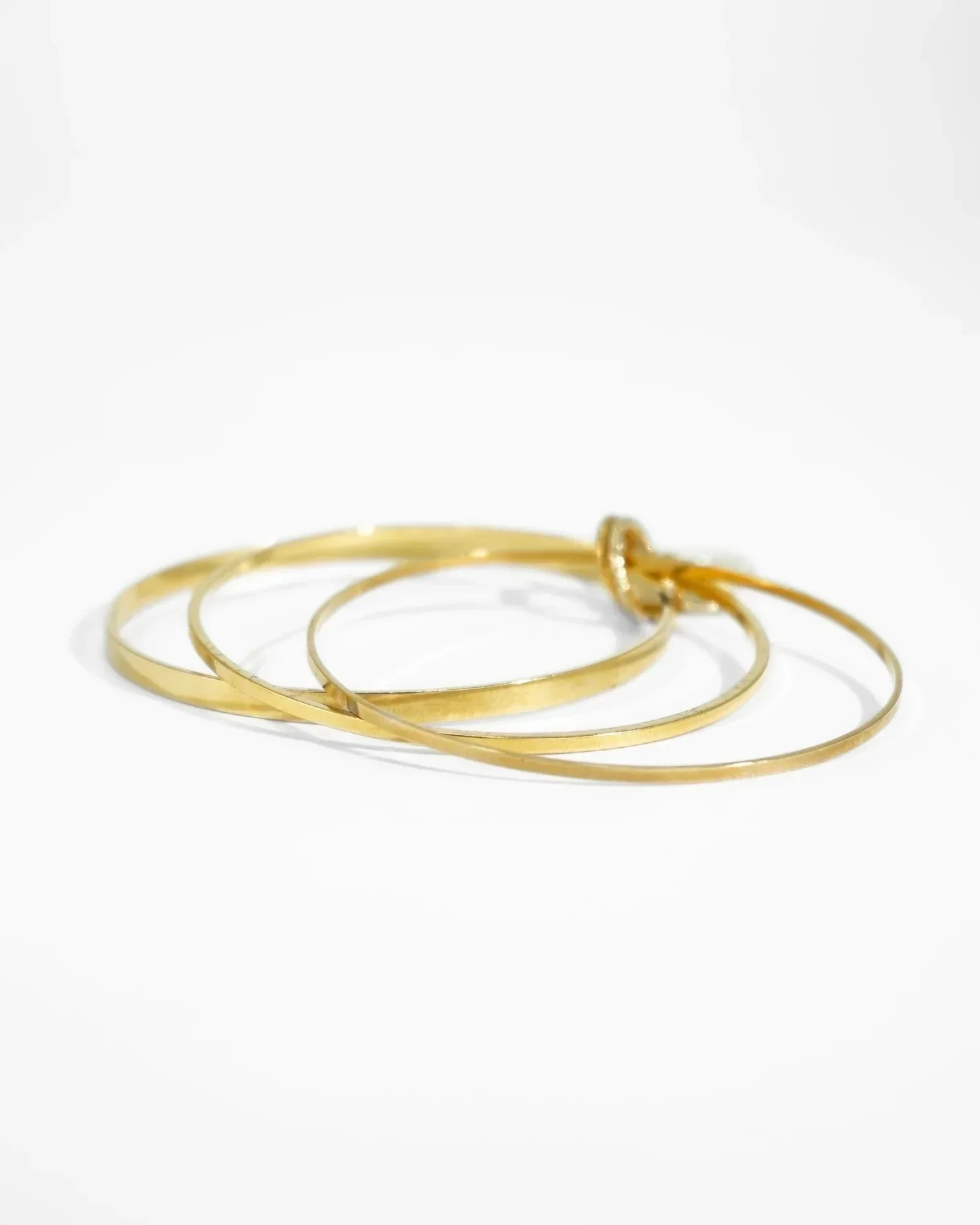 Bracciale Cuore Bracciale composto da tre cerchi rigidi di altezze differenti in metallo dorato Uniti da un “nodo” centrale da cui pende un cuore bordato in metallo dorato Peso: 20 g Made in Italy