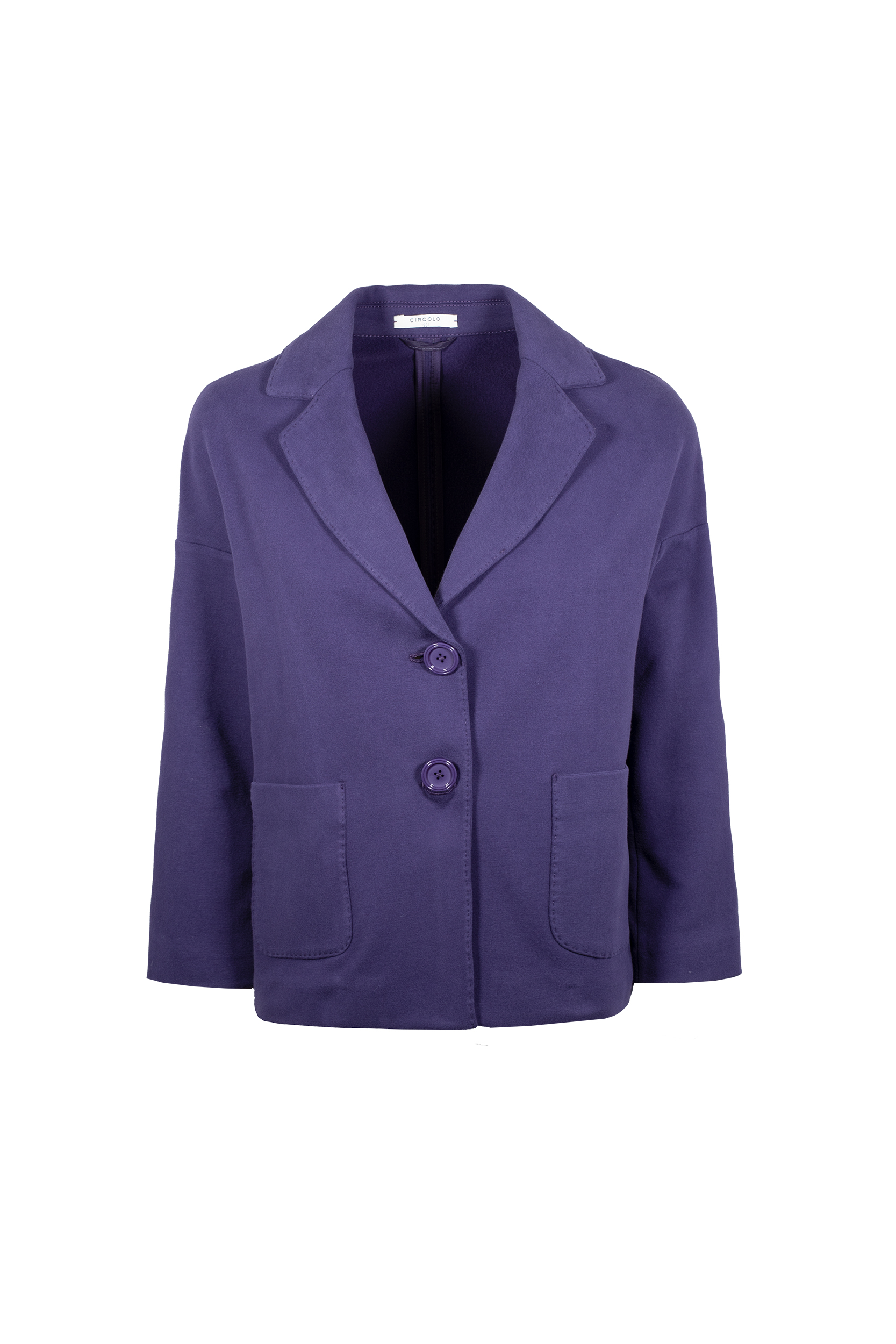 Il Caban cachemire touch CIRCOLO 1901, รจ un caban in felpa tinto light, rever, chiusura a due bottoni, due tasche a toppa.