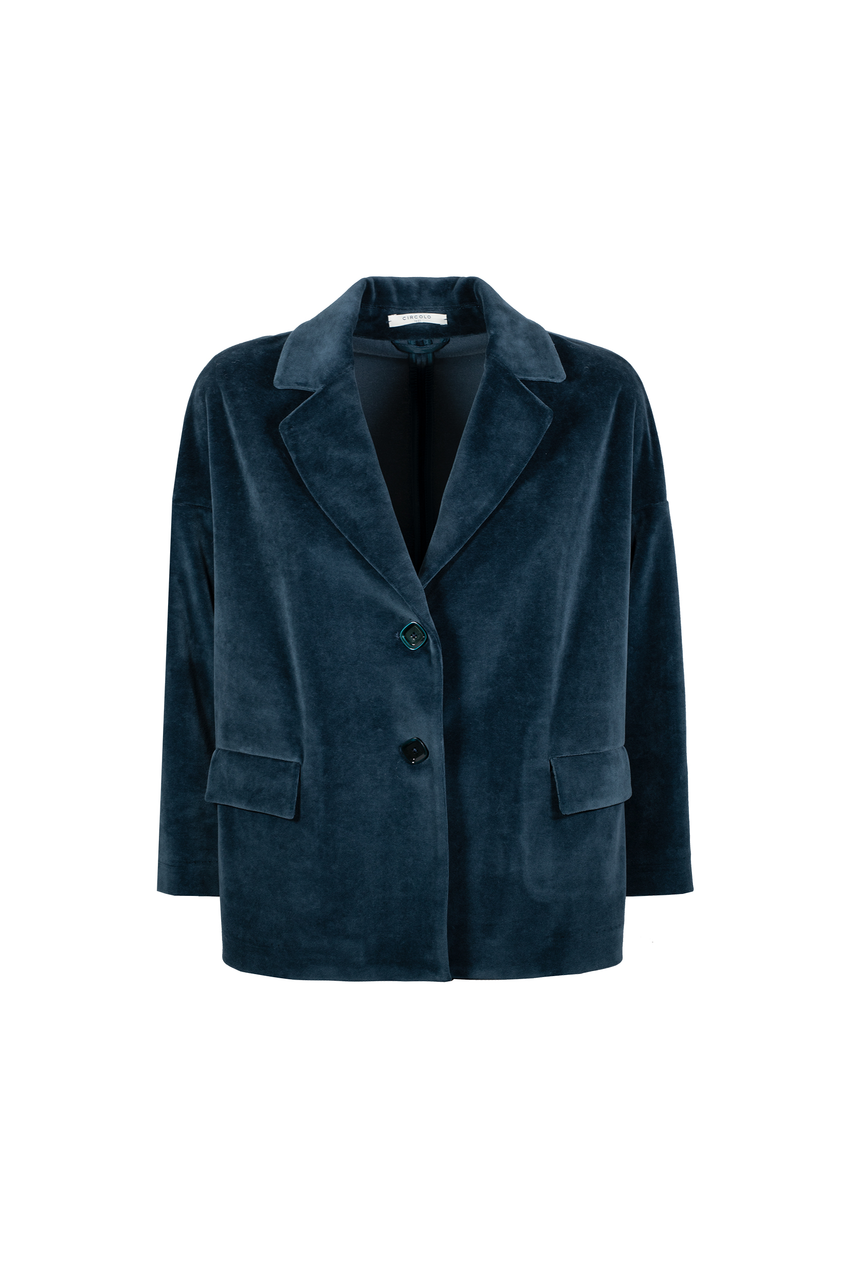 Il Caban velour CIRCOLO 1901, รจ una giacca in velluto liscio, chiusura a due bottoni, rever, due tasche a patta.