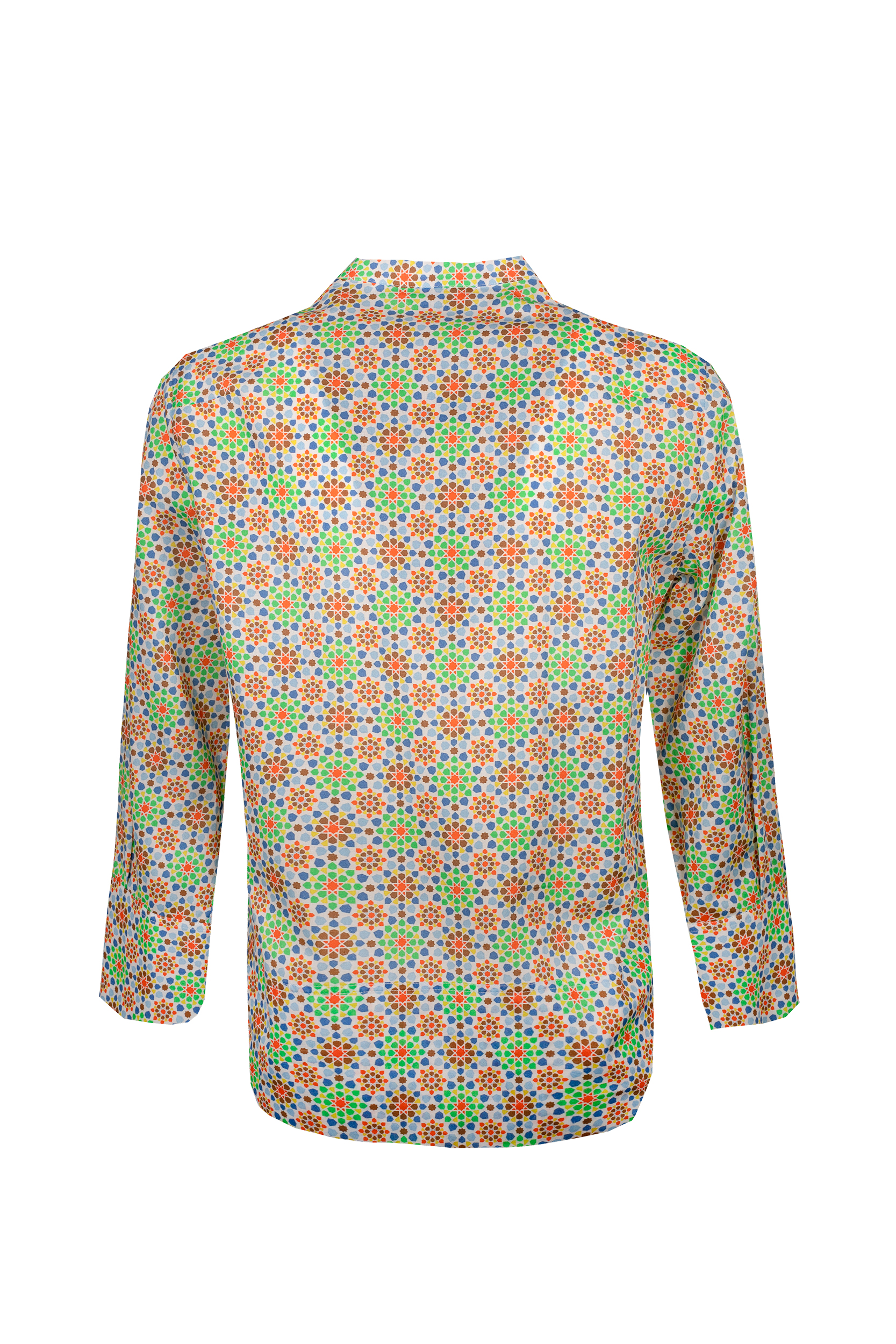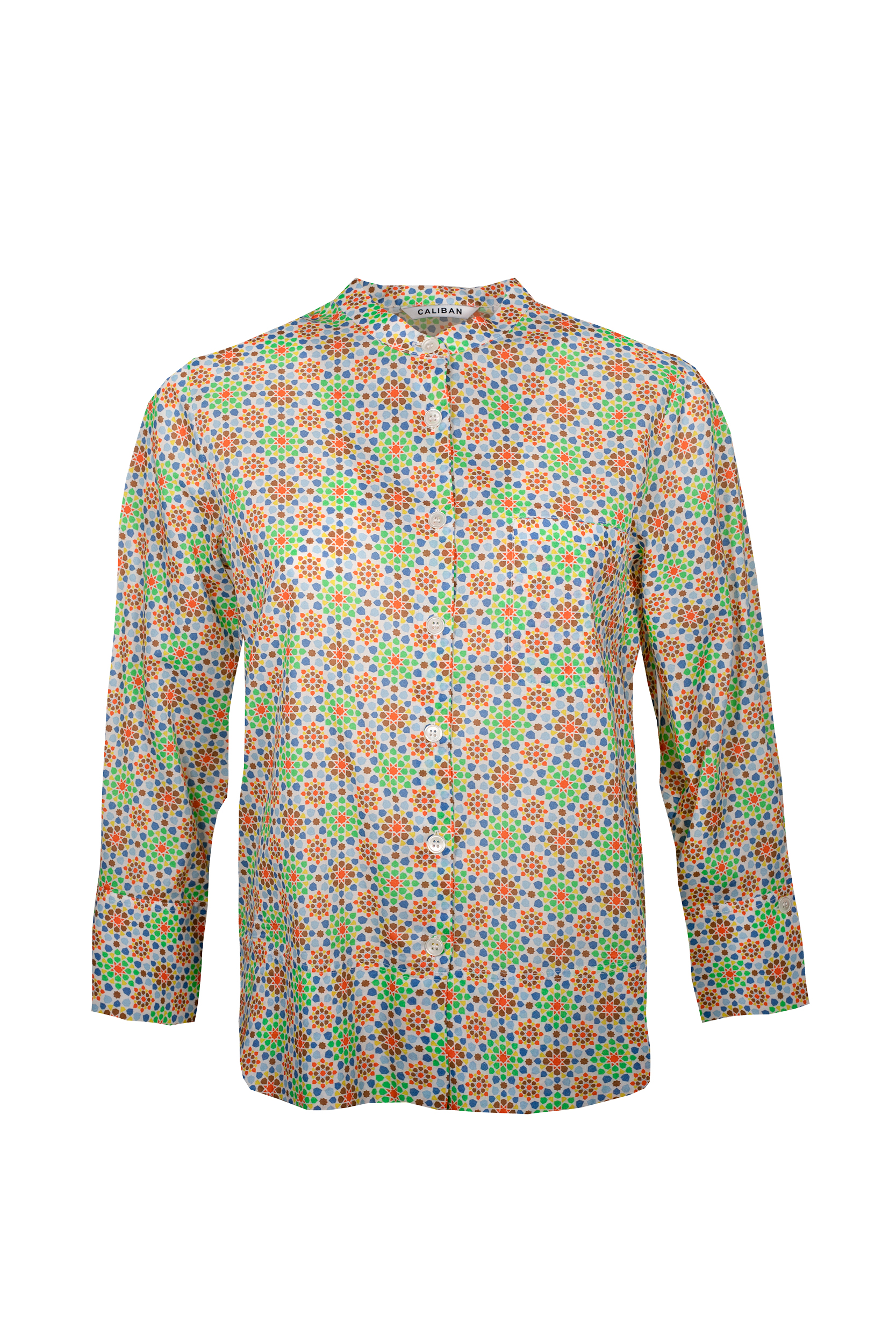 La Camicia fantasia CALIBAN, รจ una camicia in cotone alla coreana manica lunga con tasca a toppa e spacchetti laterali.