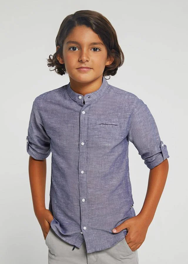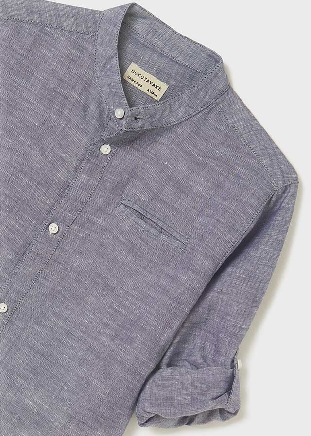 La camicia Mayoral ragazzo collo alla coreana รจ realizzata in 60% cotone e 40% lino. Fresca, pratica e leggera.