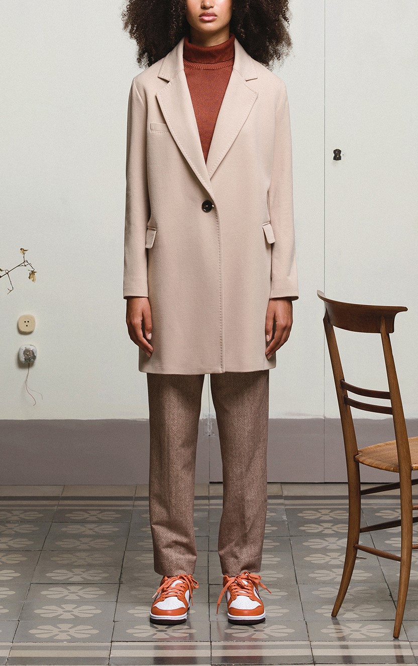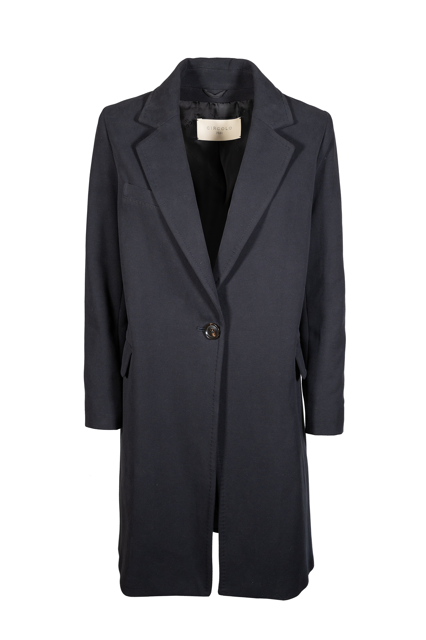 Cappotto in felpa tinto light Revers classico Chiusura un bottone Due tasche a patta e una a filo Cappotto: lunghezza 86 cm (taglia 40) Materiale: felpa Composizione: 95% Cotoneย 5% Elastan
