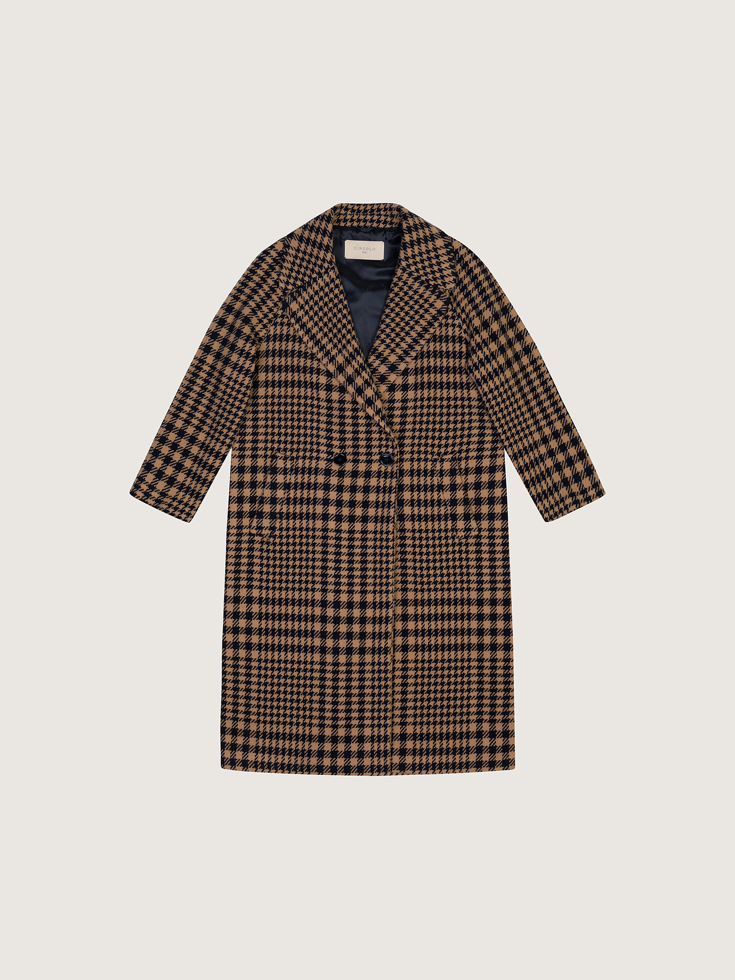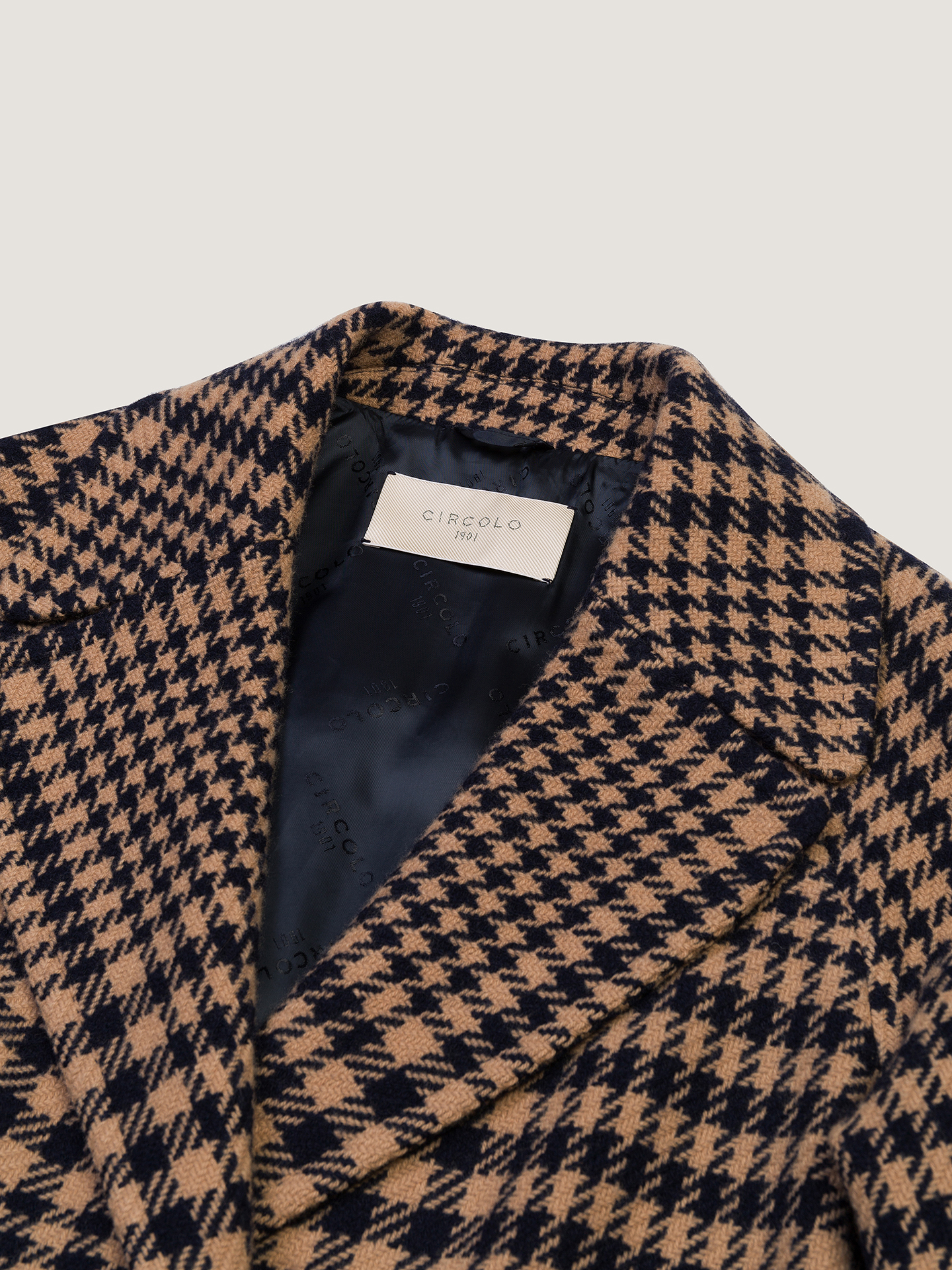 Il cappotto pied de poule CIRCOLO 1901, รจ un cappotto raglan in lana vergine. Collo con rever ampio, chiusura doppiopetto due bottoni esterni e uno interno, due tasche a filo