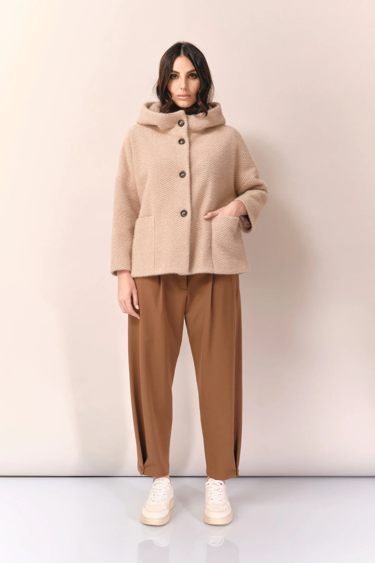 Realizzato con materiali eco-friendly, il cappotto corto White Wise spigato beige รจ pensato per chi desidera unire moda e rispetto per lโambiente. La lavorazione artigianale e lโattenzione ai dettagli garantiscono un capo di alta qualitร , confortevole e durevole. Il design essenziale e le linee pulite si adattano perfettamente sia a outfit casual, abbinato a jeans e stivali, sia a look piรน formali con pantaloni sartoriali o gonne.
