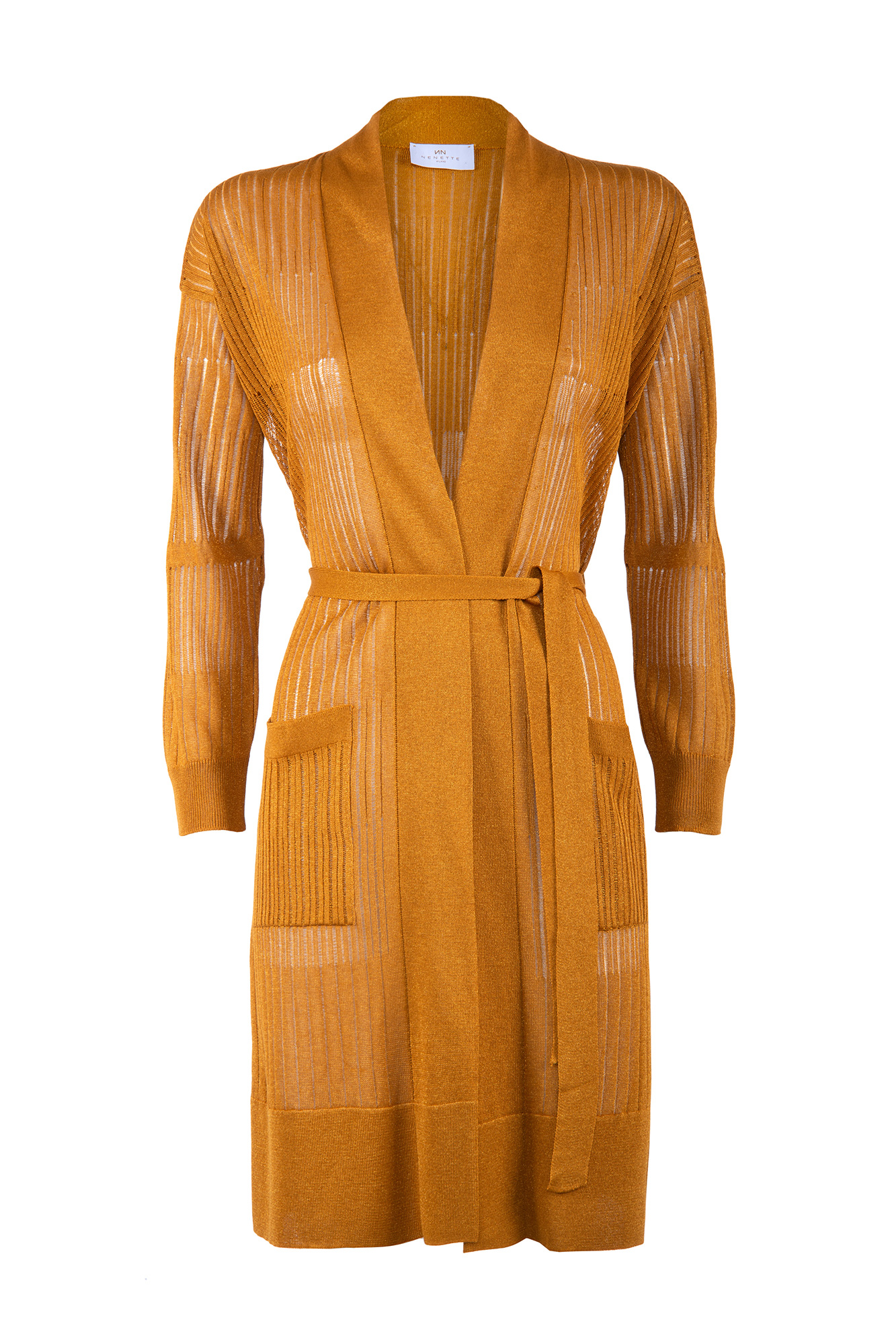 Il Cardigan Cherie NENETTE, รจ un maxi cardigan basic glossy, aperto in viscosa, con tasche sul davanti e cinta.