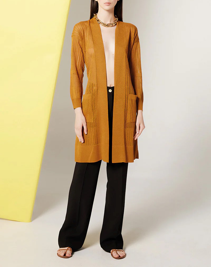 Maxi cardigan basic glossy in viscosa Aperto senza bottoni Tasche sul davanti Cintura Composizione: 75% Viscosa 25% Poliestere