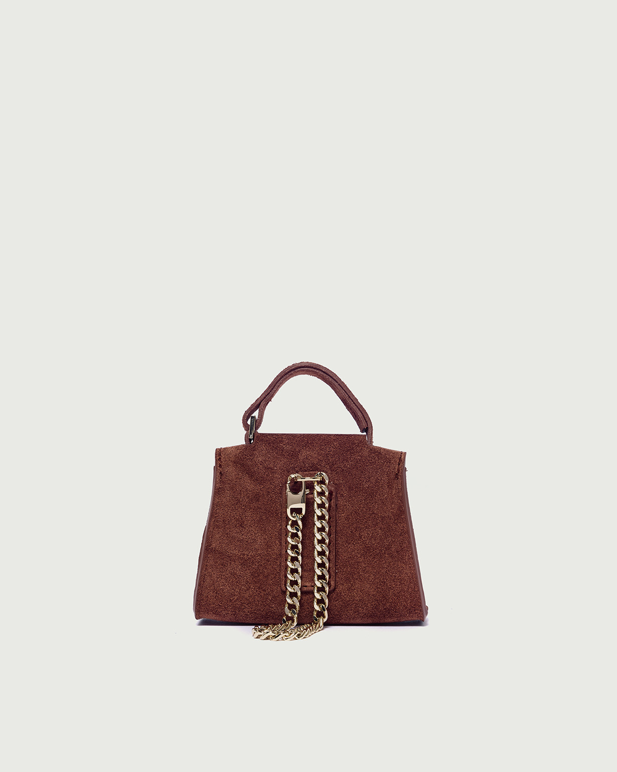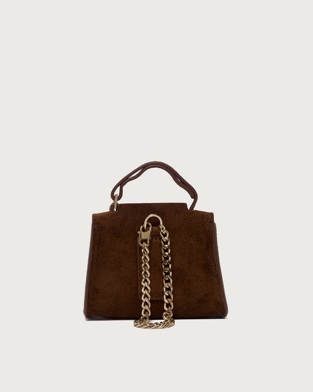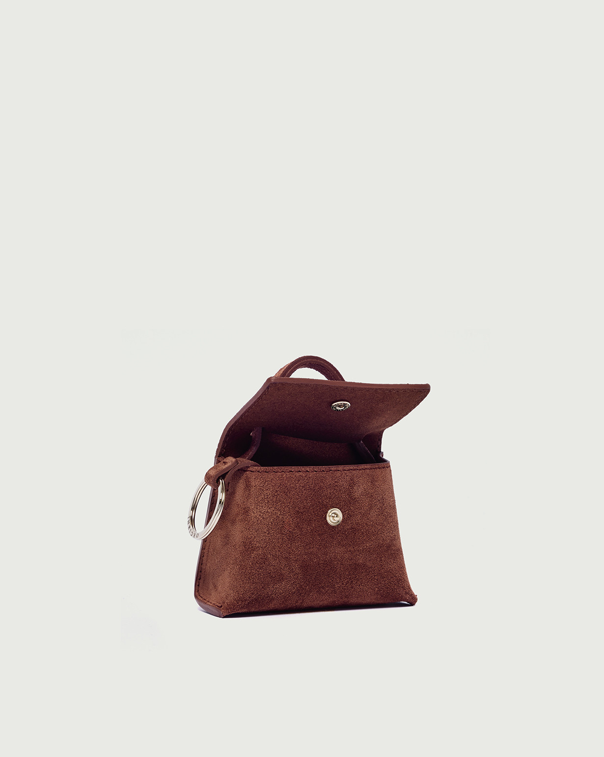 Charms mini Sveva Dimensioni: Larghezza: 10,5 cm / Altezza: 7 cm / Profonditร : 4 cm Chiusura: con patta e bottone a pressione Funzionalitร : anello portachiavi interno / moschettone con catena posteriore /passante posteriore per cintura Materiale: suede Dettagli: metallerie finitura oro chiaro Made in Italy