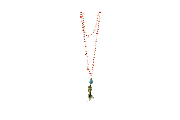 La Collana Bubble Fish FEMME ROUGE, รจ una collana in ottone e pietre. Ciondolo in ottone smaltato e resina acetato.