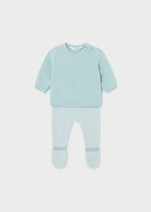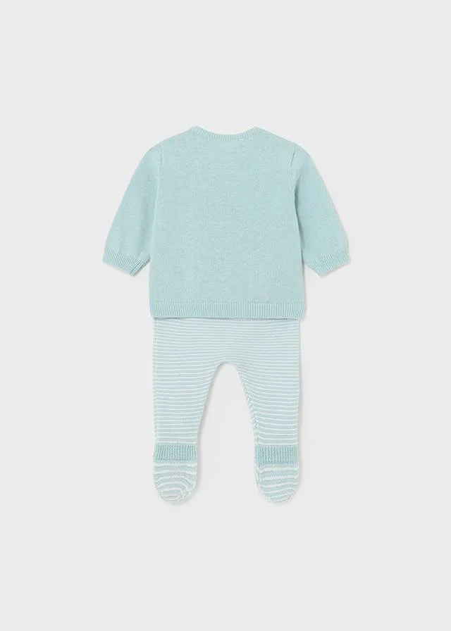 Completo Mayoral 2 pezzi manica lunga per neonato. Girocollo. Chiusura con bottoni sulla schiena per facilitare la vestibilitร del capo. Tessuto a maglia morbido e piacevole al tatto. Design con volant decorativo nella parte bassa.