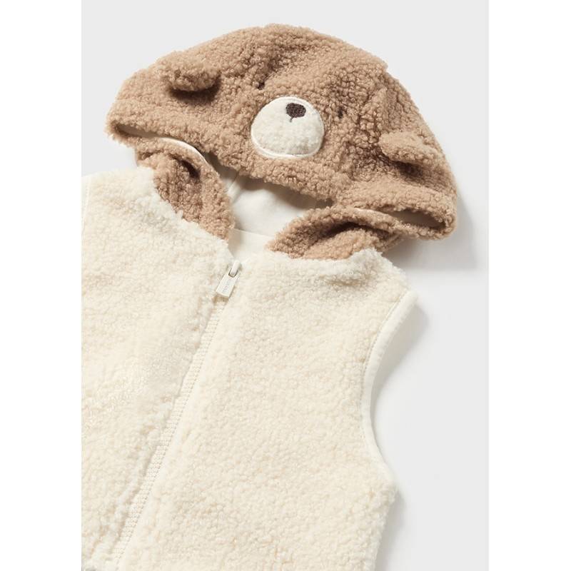 - Gilet senza manica per neonato. Modello con cappuccio. Elementi decorativi: applicazione orecchie