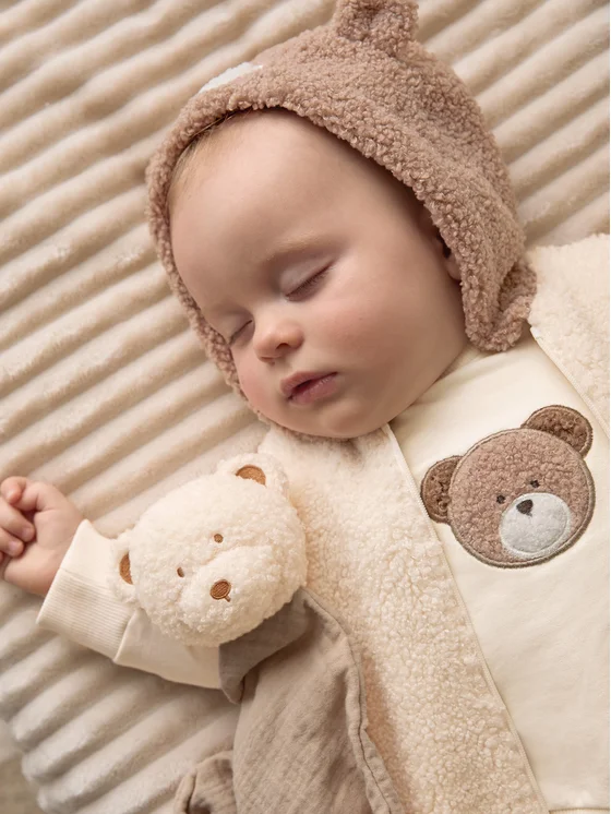 - Felpa manica lunga per neonato. Chiusura con bottone a pressione sulla spalla per agevolare la vestibilitร . Elementi decorativi: elementi texture a contrasto