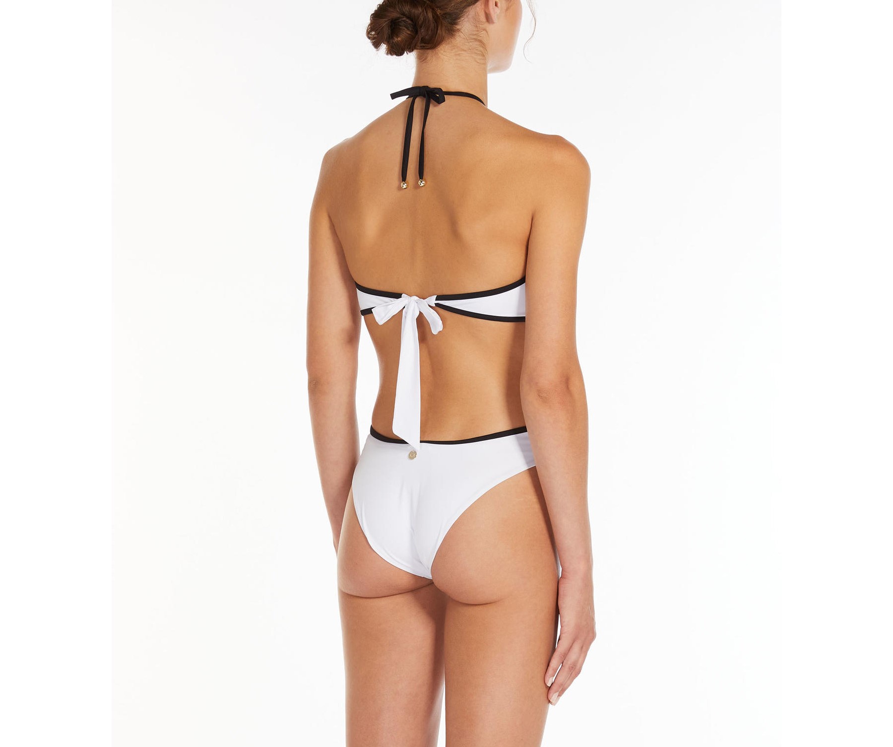 Il Costume intero Casilda MAX MARA Beachwear, รจ realizzato in jersey, resistente al pilling e traspirante, caratterizzato da un gioco cromatico effetto optical. Tessuto elastico quick dry con fattore di protezione UPF 50+, che dona a chi lo indossa una piacevole sensazione di comfort su tutto il corpo. Il design รจ sagomato sui fianchi per creare un effetto a clessidra dal forte impatto visivo, coppe estraibili a triangolo incrociate sul dรฉcolletรฉ e allacciate sul retro del collo con spalline sottili. Il costume visto da dietro da l’effetto di un bikini con slip e allacciatura a reggiseno. Rifinito con medaglietta logata color oro posizionata al centro della vita sul retro.