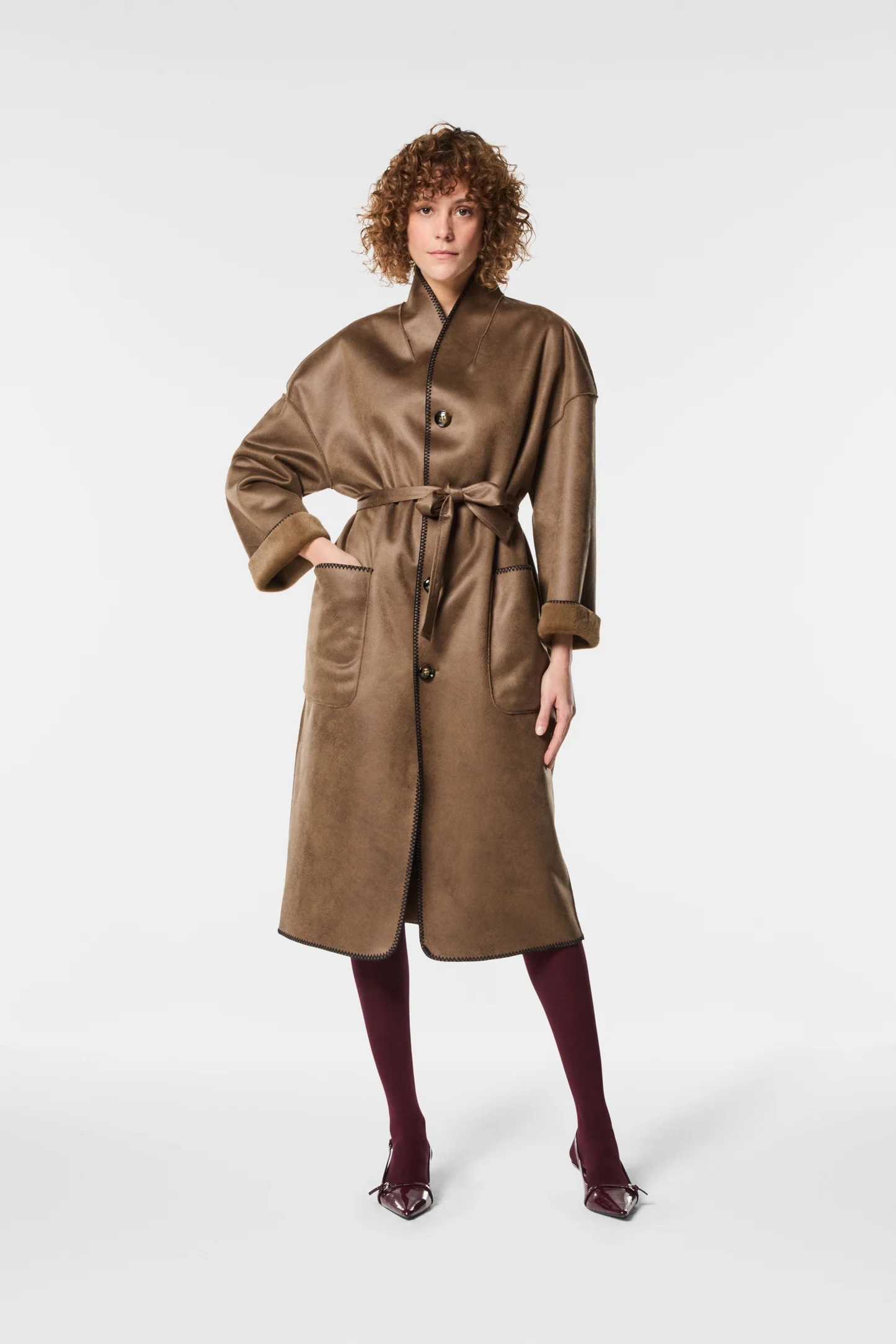 L’ Ecovisone Pavia NENETTE, รจ un elegante cappotto reversibile in ecovisone con cintura, ideale per chi ama unire comfort e femminilitร . Morbido e avvolgente, sottolinea la vita con un tocco sofisticato. Perfetto da indossare per un outfit sofisticato con un tocco contemporaneo.