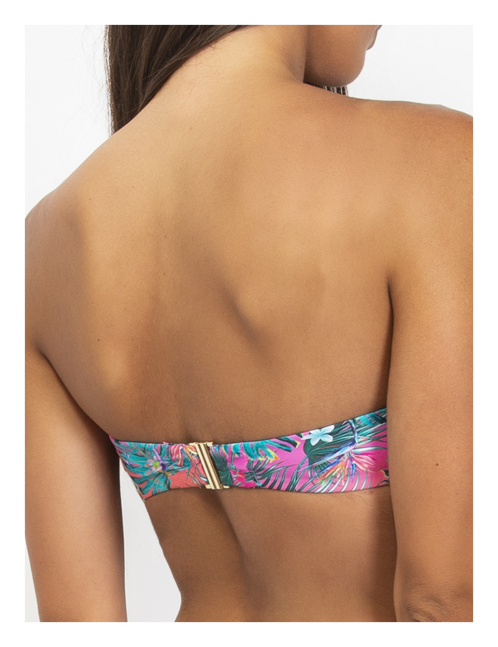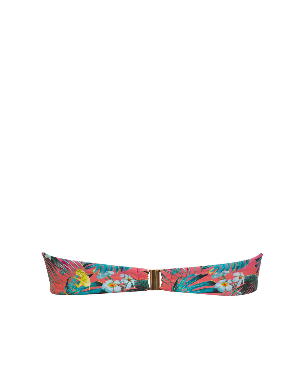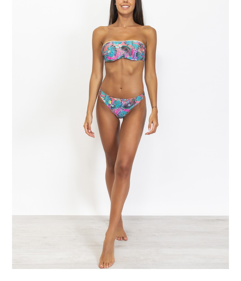 Bikini topย a fascia dal taglio dritto con ferretto invisibile Stampa jungle รจ reinterpretata in chiave fantasy tingendosi di colori psichedelici e disegni originali Fascia arricchita da sottile passamaneria in lurex con motivo a onda che dona un tocco di luce Dotata di balenette laterali che aiutano a sostenere e spallina removibile COMPOSIZIONE TESSILE: Rete: 73% Poliammide – 27% Elastam ; Tessuto: 76% Poliammide – 24% Elastam