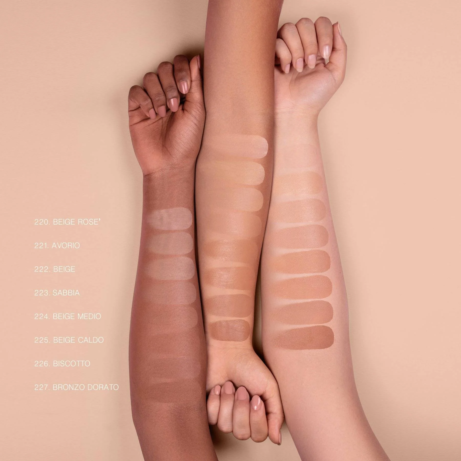 | Colore | AVORIO, BEIGE, beige caldo, beige medio, beige rosรฉ, biscotto, bronzo dorato, SABBIA |