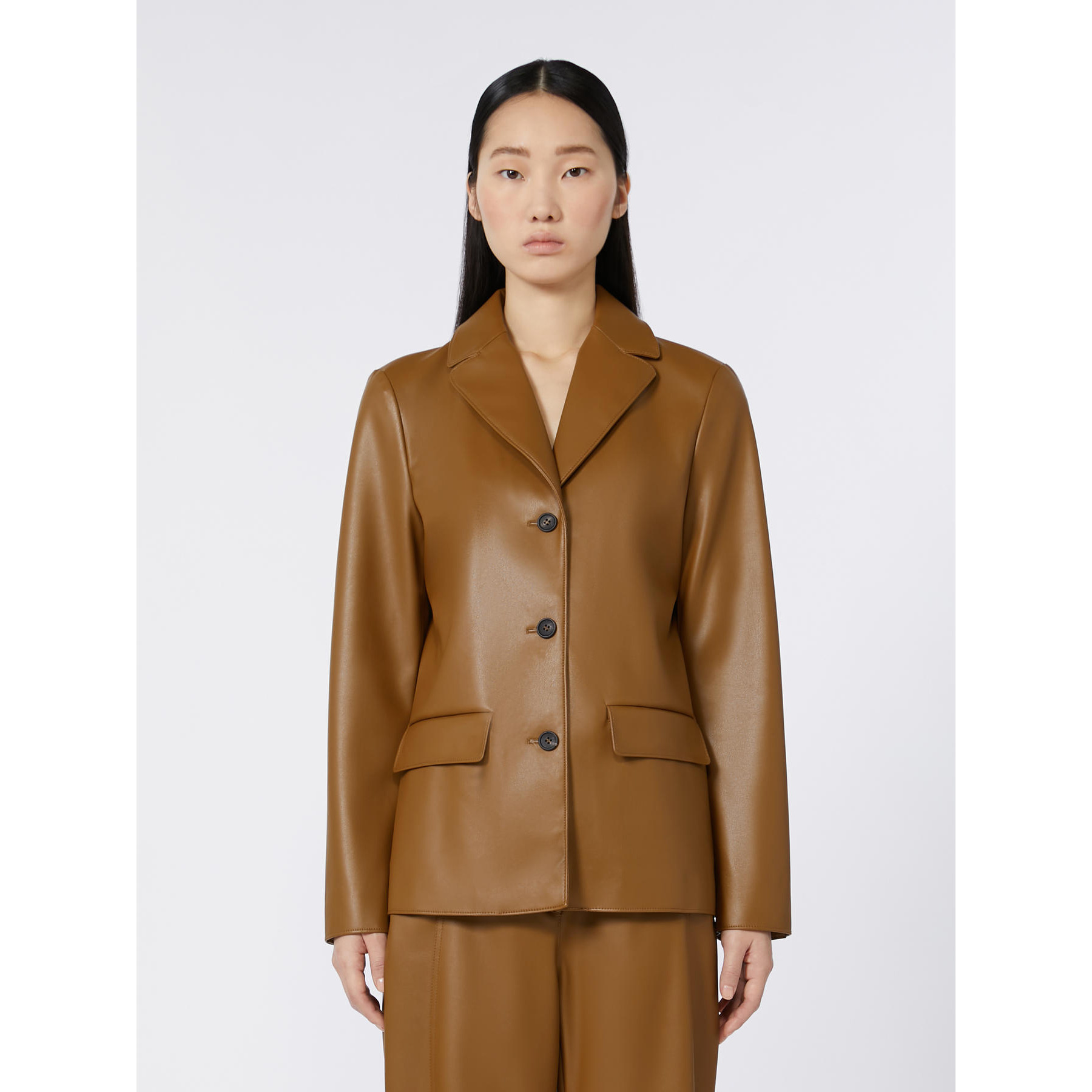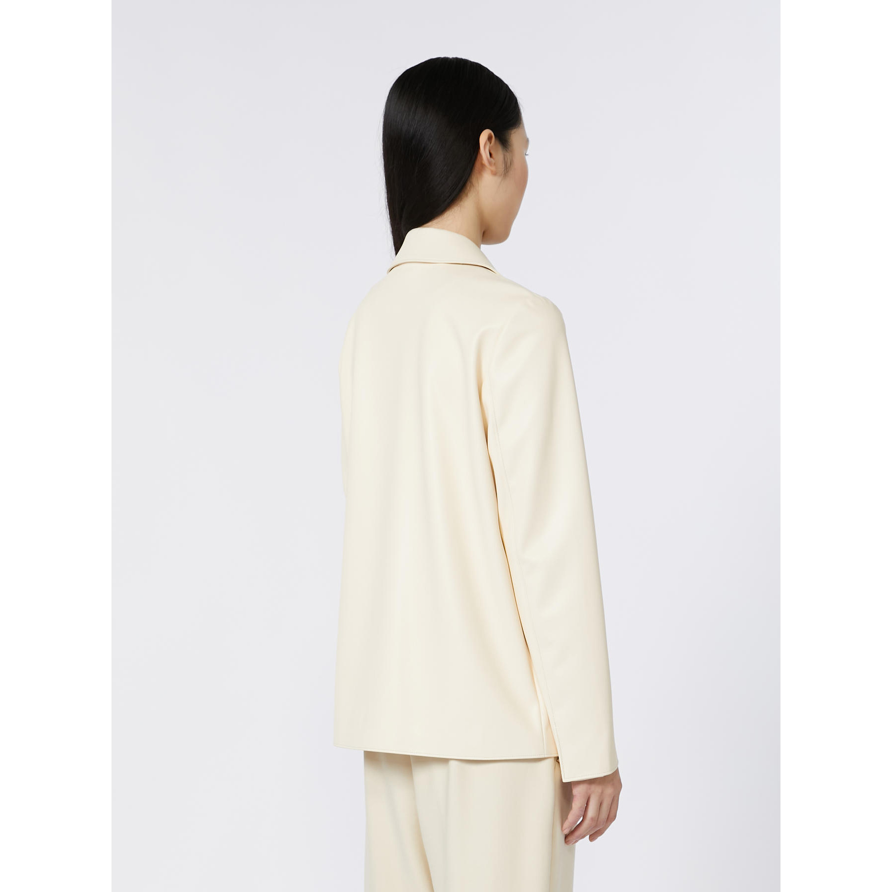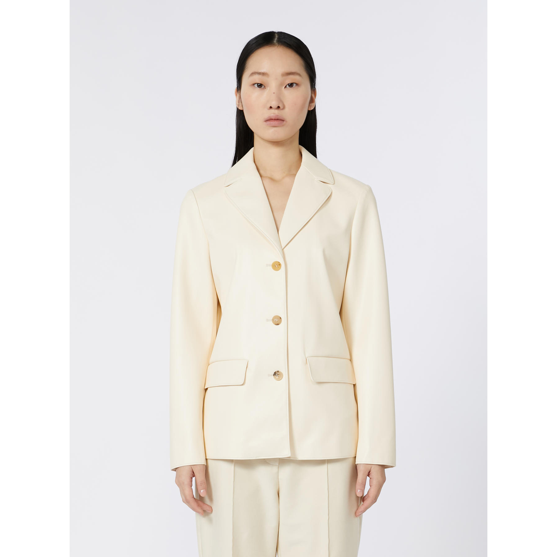 La Giacca Albatro MAX MARA, รจ una giacca realizzata in jersey con texture effetto nappa e rifinita con impunture. Di ispirazione blazer, il capo ha collo con rever, maniche lunghe con fodera interna, patte applicate. Chiusura monopetto con triplo bottone sul davanti.
