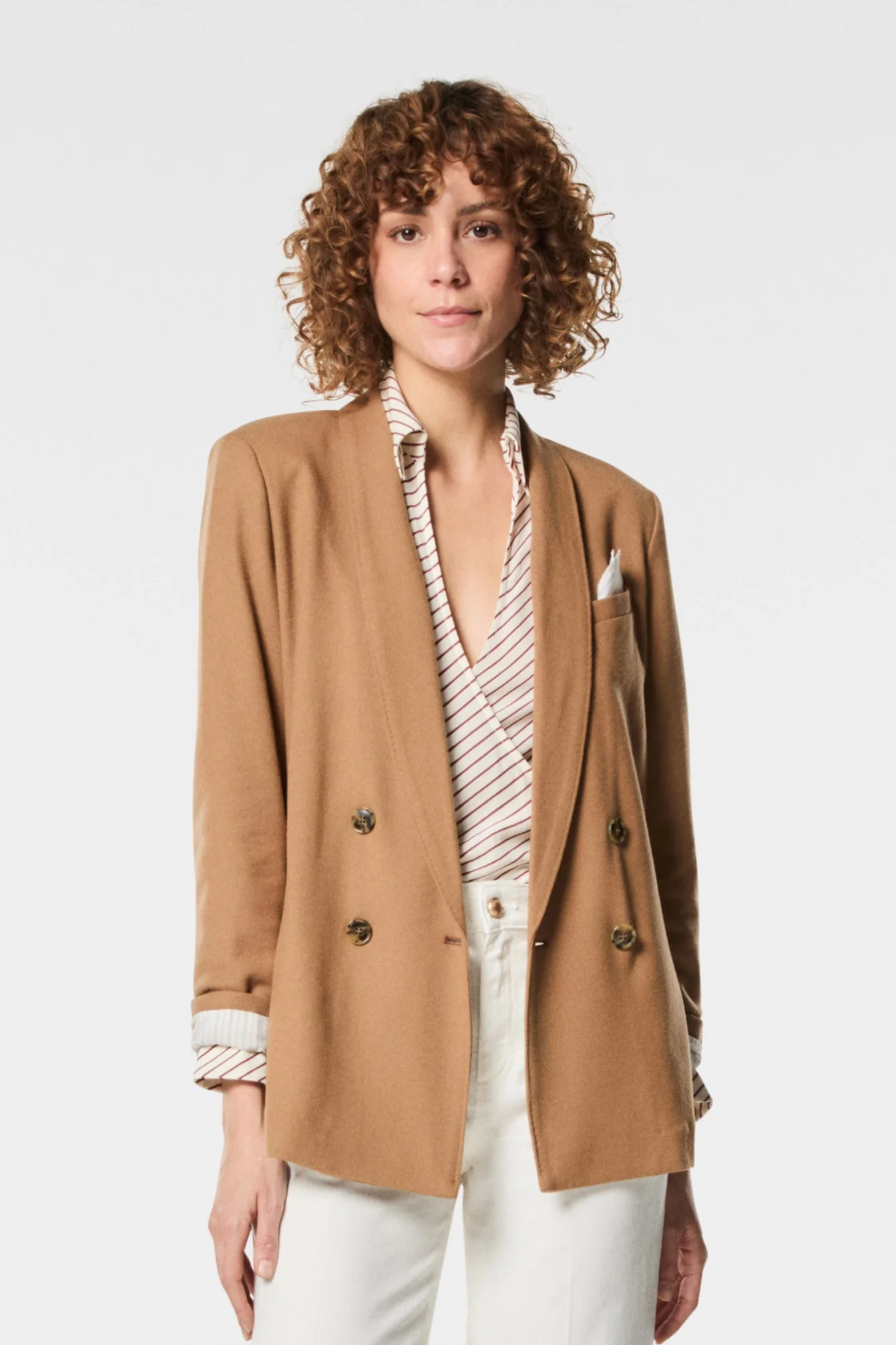 La Giacca Brandon NENETTE, รจ una giacca doppiopetto in jersey di lana, morbida e strutturata al tempo stesso. Il design classico รจ rivisitato in chiave contemporanea grazie al tessuto flessibile e confortevole. Ideale per look formali o piรน rilassati, unisce eleganza e praticitร con uno stile sobrio e raffinato.