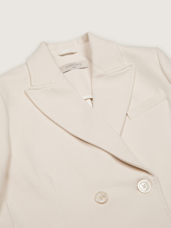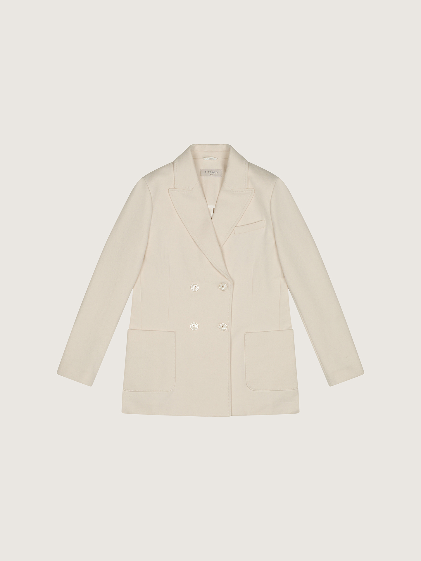 La Giacca Doppiopetto CIRCOLO 1901, รจ una giacca doppiopetto in felpa tinto light. Rever a lancia chiusura a quattro bottoni,ย polsini con bottoni, due tasche a toppa e una a filo. Completo con il pantalone FD2800.