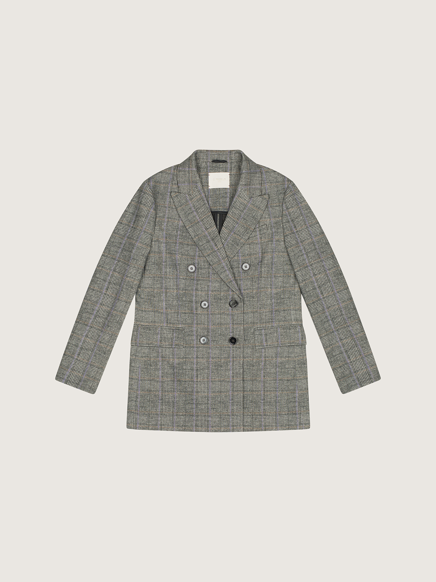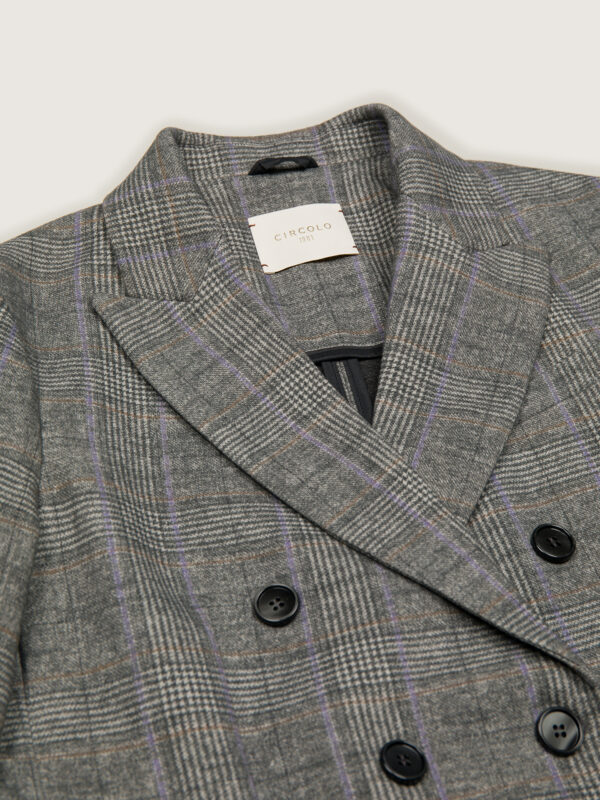 La Giacca Doppiopetto Overcheck CIRCOLO 1901, รจ una giacca doppiopetto in felpa stampata Principe di Galles. Rever a lancia, chiusura a sei bottoni, polsini con bottoni, due tasche a patta e una a filo.
