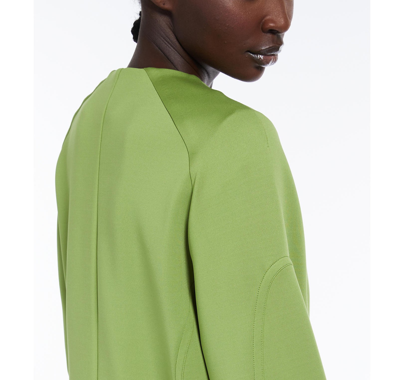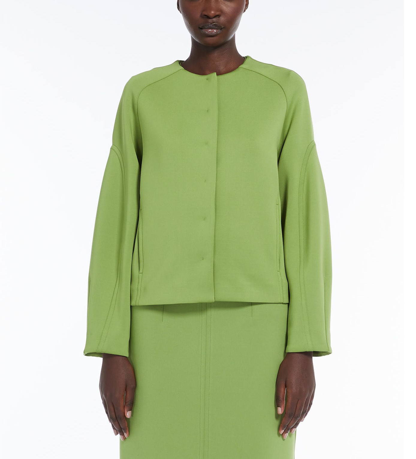La Giacca Dramma MAX MARA Leisure, la giacca morbida in neoprene con girocollo e maniche raglan. Il motivo di tagli definisce il capo con volumi inediti, creando un effetto bombato piรน stretto sui polsi. Chiusura con bottoni sul davanti. Lunghezza 54 cm.