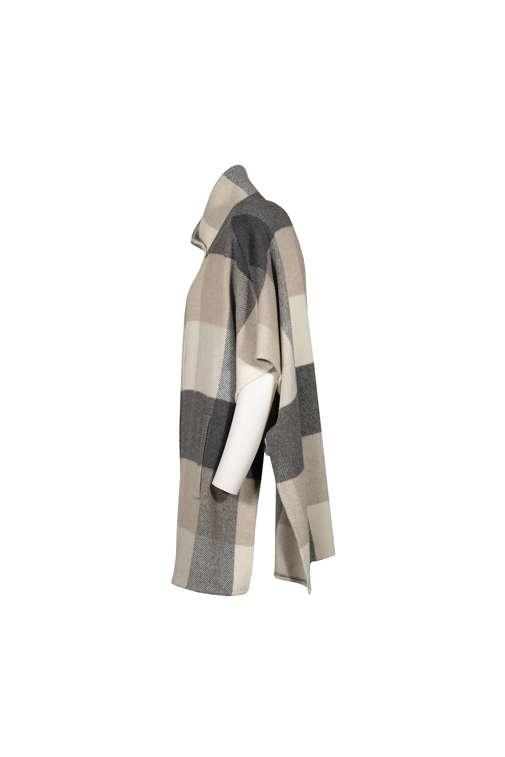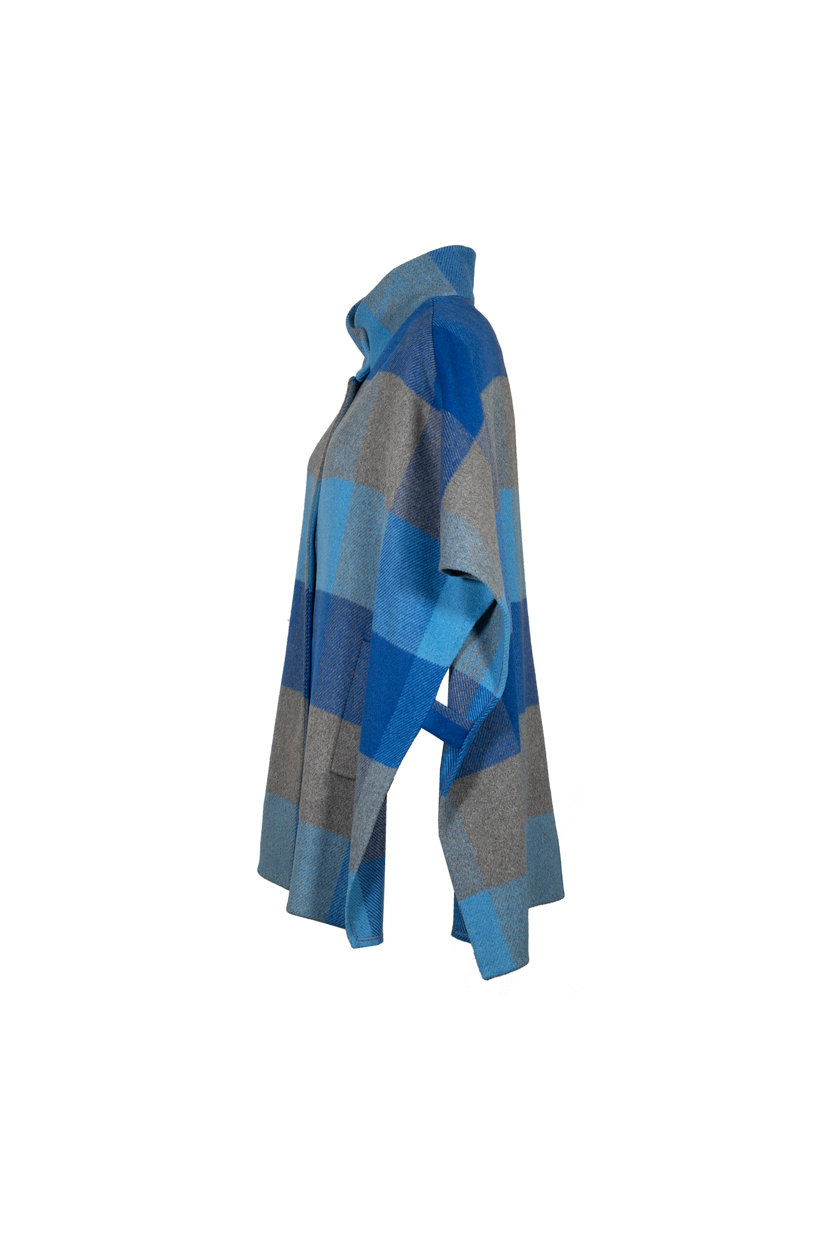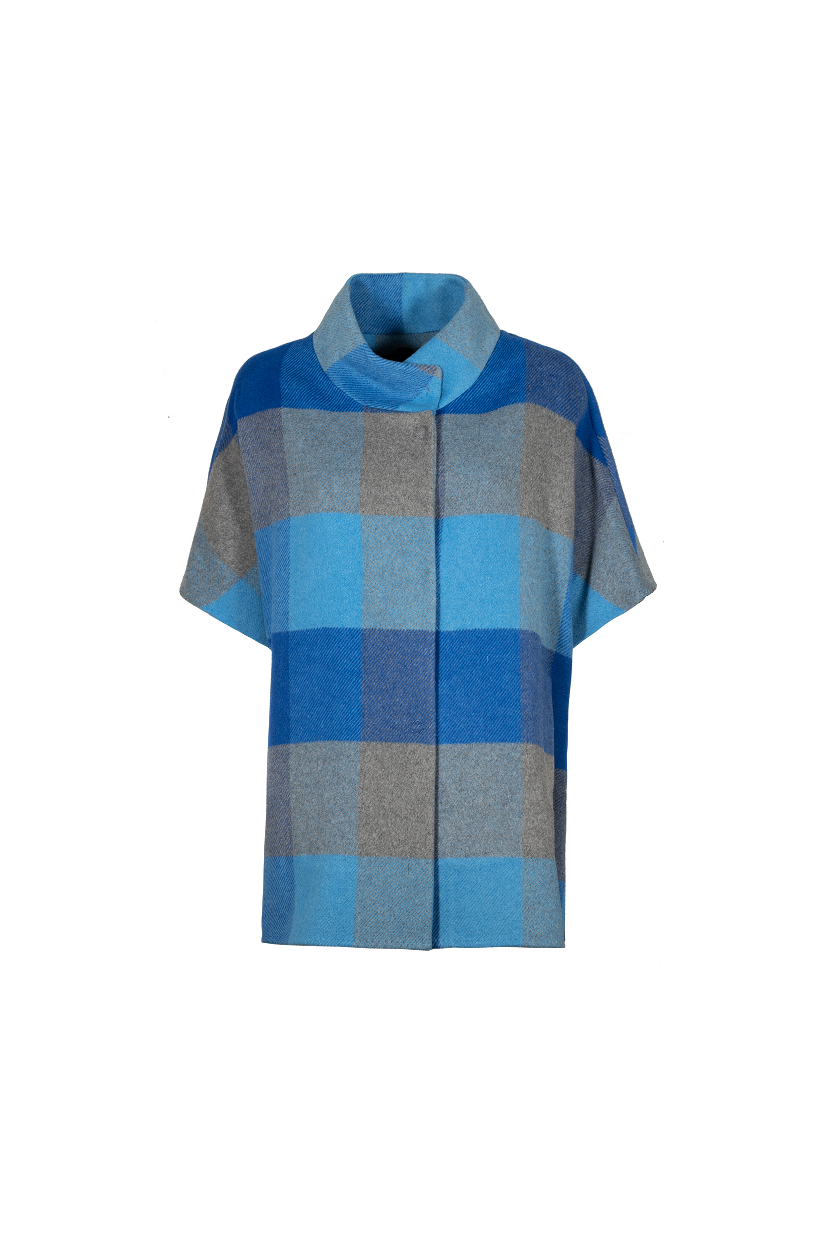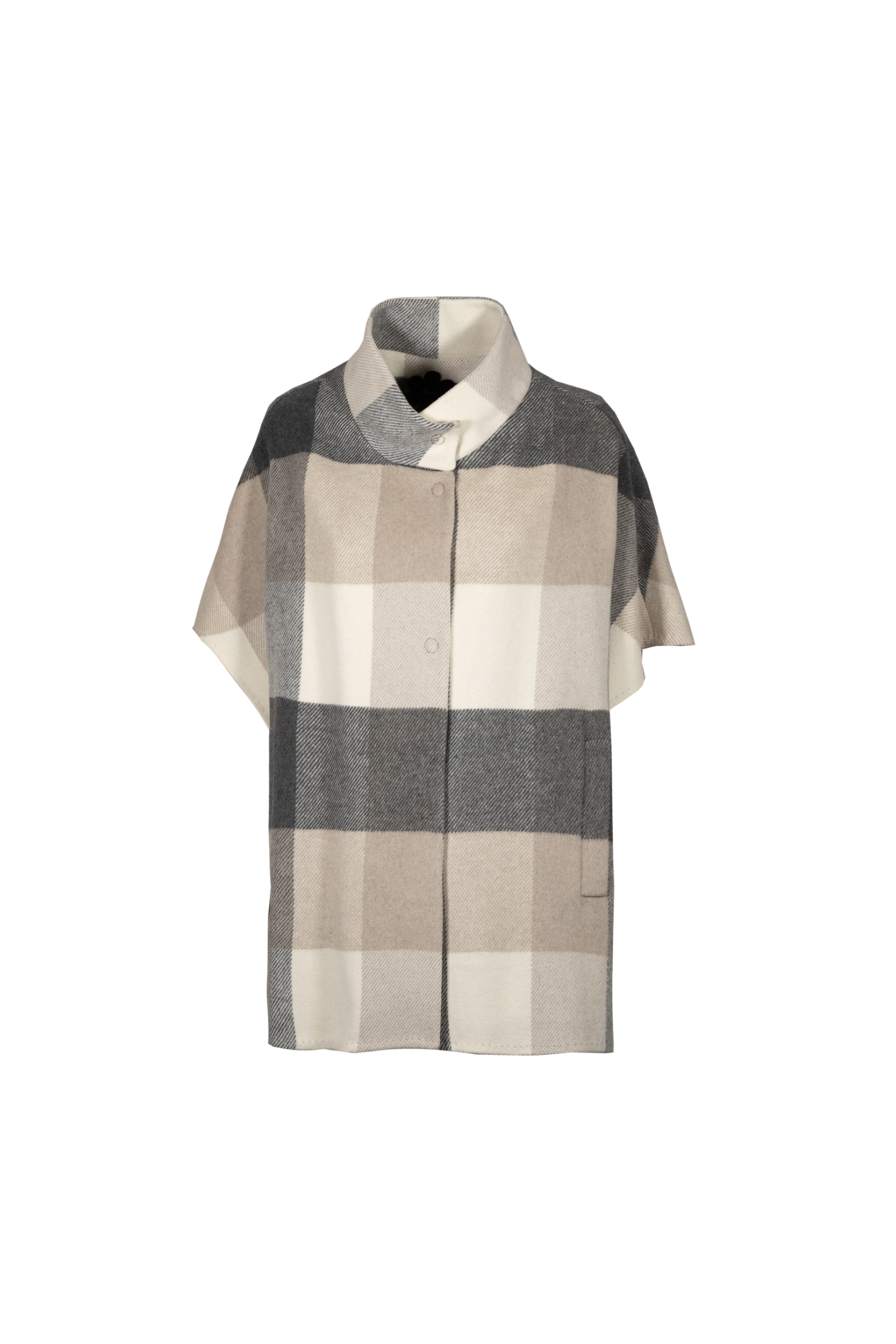 La Giacca mantella MOUCHE, รจ una mantella a fantasia vichy. Chiusura anteriore con bottoni a pressione coperti, tasche laterali, smanicata.