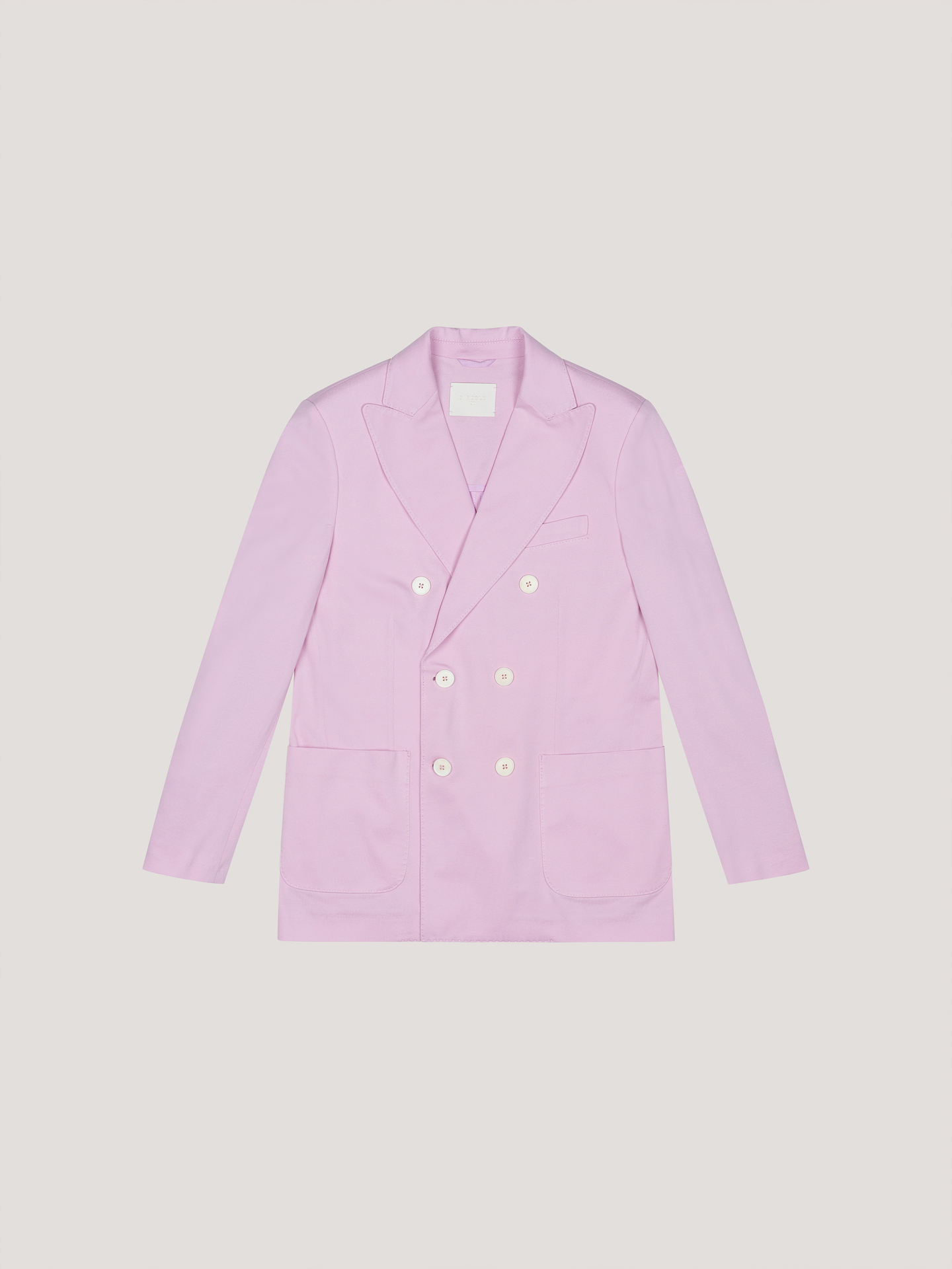 Doppiopetto in Piquet Filo di Scozia tinto light Revers a lancia con occhiello Chiusura sei bottoni Polsini con bottoni Due tasche a toppa e una a filo Giacca: lunghezza 74 cm (taglia 42) Materiale: Piquet Composizione: 97% Cotone โ 3% Elastan
