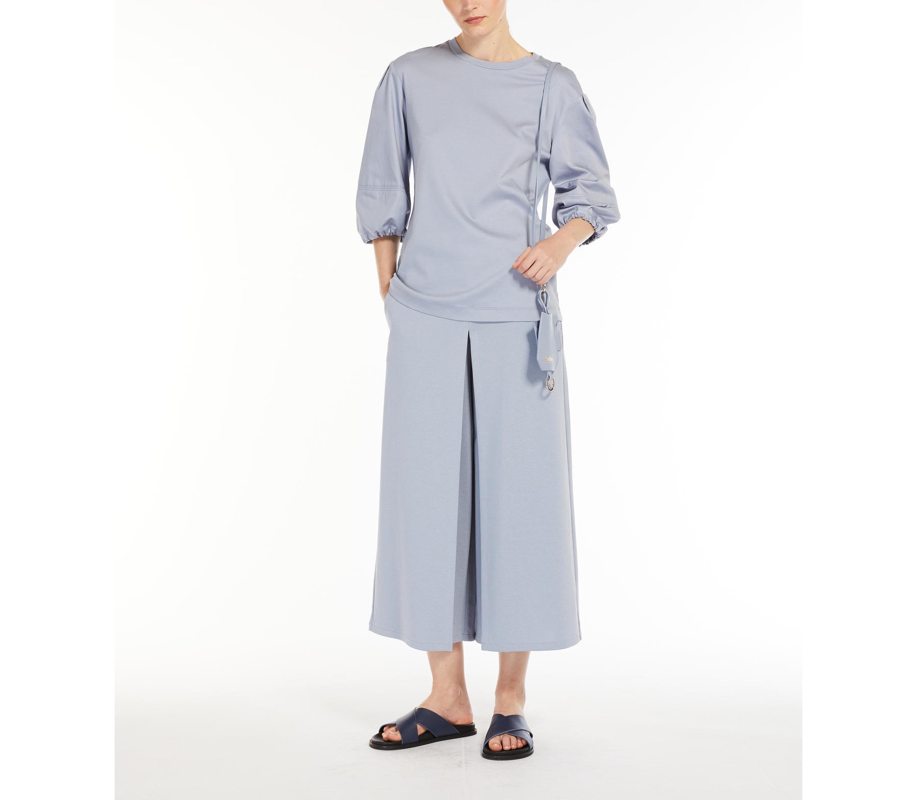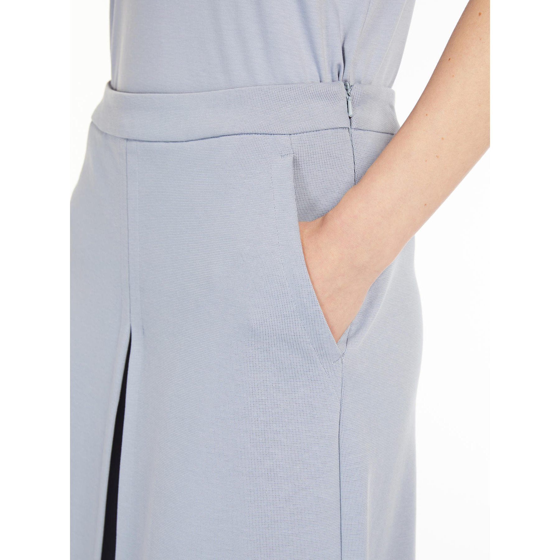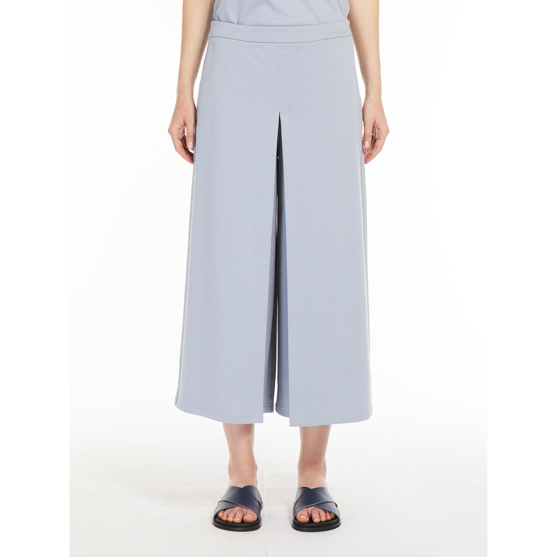 La Gonna Pantalone Quid MAX MARA Leisure, รจ una gonna pantalone in morbido jersey di cotone, lavorato a punto Milano, caratterizzata da una silhouette ampia con contropiego centrale sul davanti impunturato. Rifinita con tasche sui fianchi e chiusura con zip. Lunghezza 88 cm.