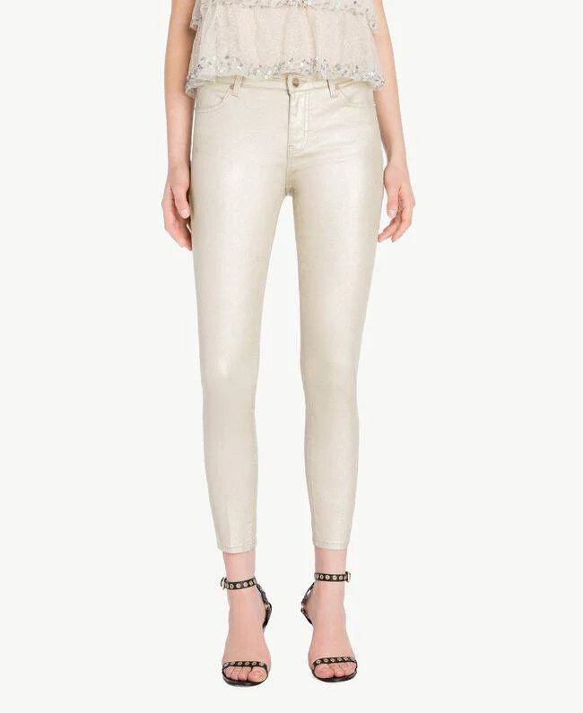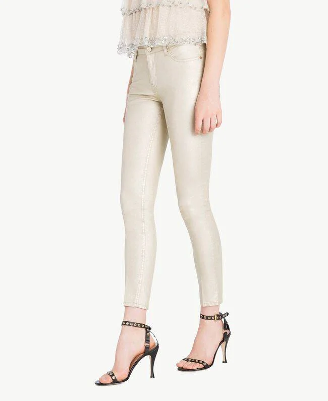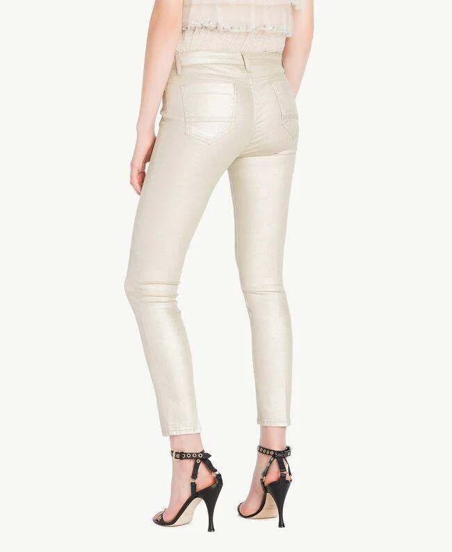 I jeans Twin Set skinny oro sono perfetti per creare dei look alla moda e super glamour.