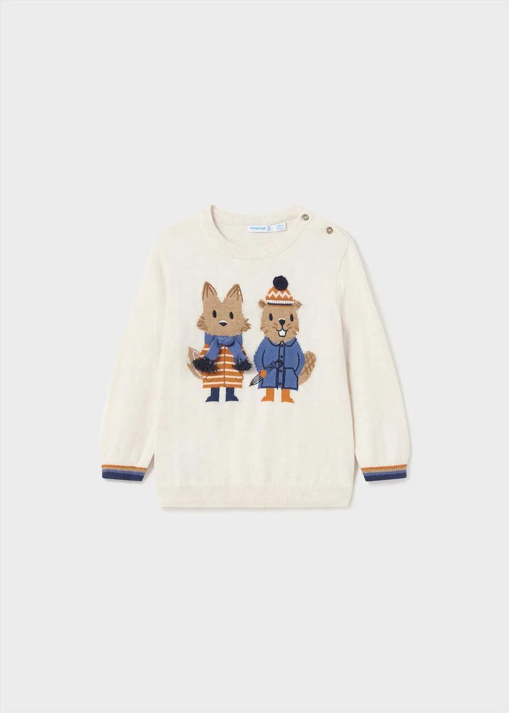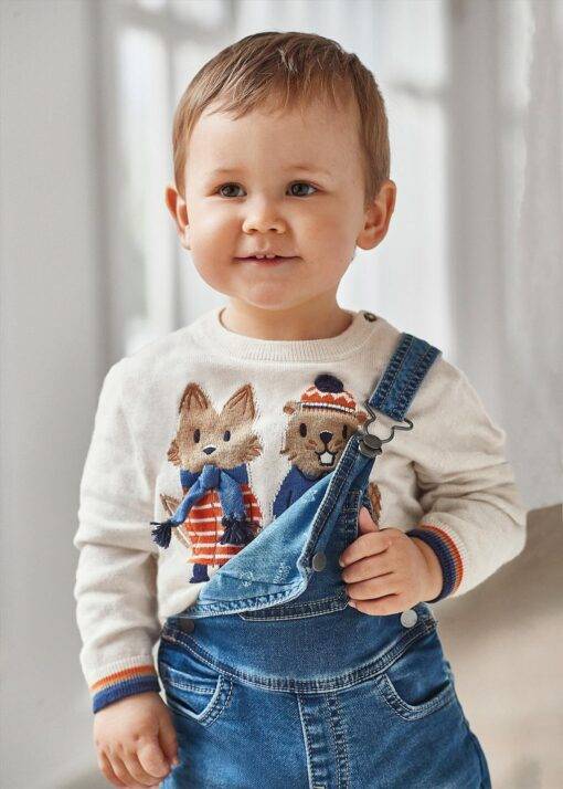 Maglia Mayoral con design a intarso. Maglione a maniche lunghe per neonati con chiusura tramite bottoni sulla spalla. Realizzato in lana di alta qualitร e caratterizzato da un design intrecciato realizzato con la tecnica dell’intarsio.