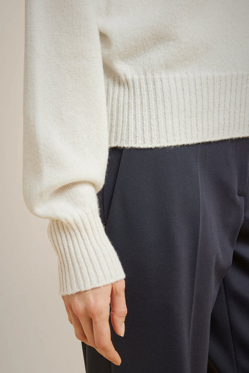 Maglia dalla linea morbida In filato 100% cashmere Impreziosito con micro paillettes Girocollo a coste Manica lunga taglio raglan Polso e bordo al fondo a coste Composizione: 81% KASHMIR 15% POLIESTERE 4% POLIAMMIDE Made in ITALY
