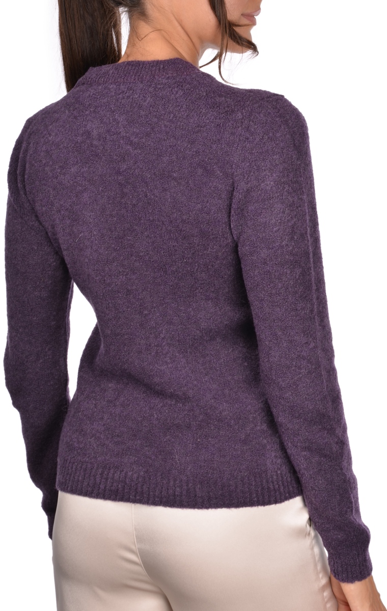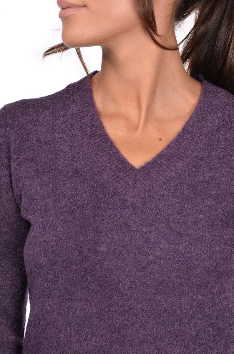 Maglia con scollo a V in lana 2 fili effetto bouclè Manica lunga Bordi a costine Composizione: 70% lana Vergine 30% Poliammide Made in Italy
