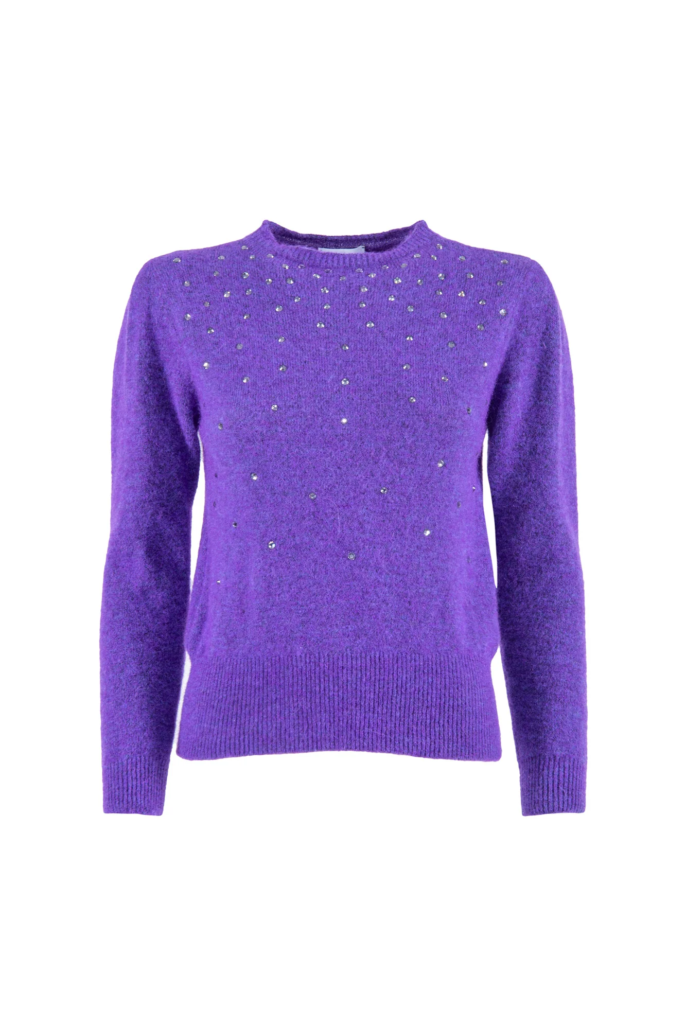 La Maglia strass Maggiolino NENETTE, รจ una maglia in misto alpaca, girocollo, manica lunga, con strass applicati.