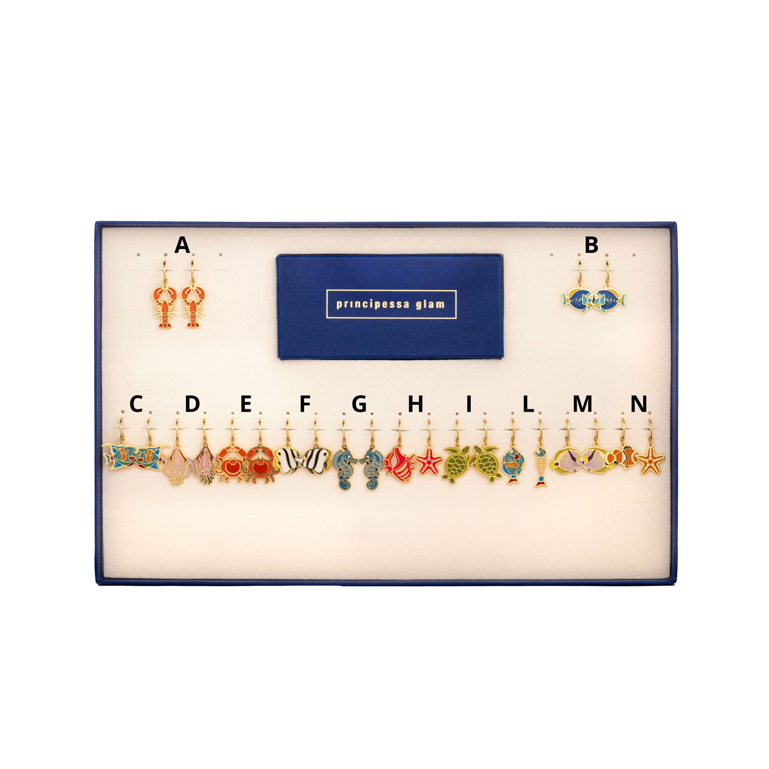 Gli Orecchini Acqua PRINCIPESSA GLAM, รจ uno speciale kit di orecchini per la Primavera Estate con tema Acqua, con dei bellissimi e divertenti charms, tutti come sempre rigorosamenti smaltati a mano.