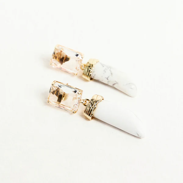Orecchini in cristallo Pendente a forma di piccolo corno Materiali: Ottone, pietre, cristalli Peso: Circa 19 g Lunghezza: Circa 6 cm Made in Italy