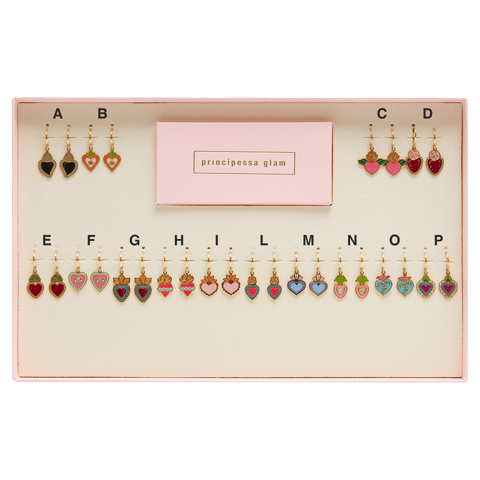 Gli Orecchini Cuore Sacro PRINCIPESSA GLAM, รจ uno speciale kit di orecchini con tema Cuore Sacro, con dei bellissimi e divertenti charms, tutti come sempre rigorosamenti smaltati a mano.