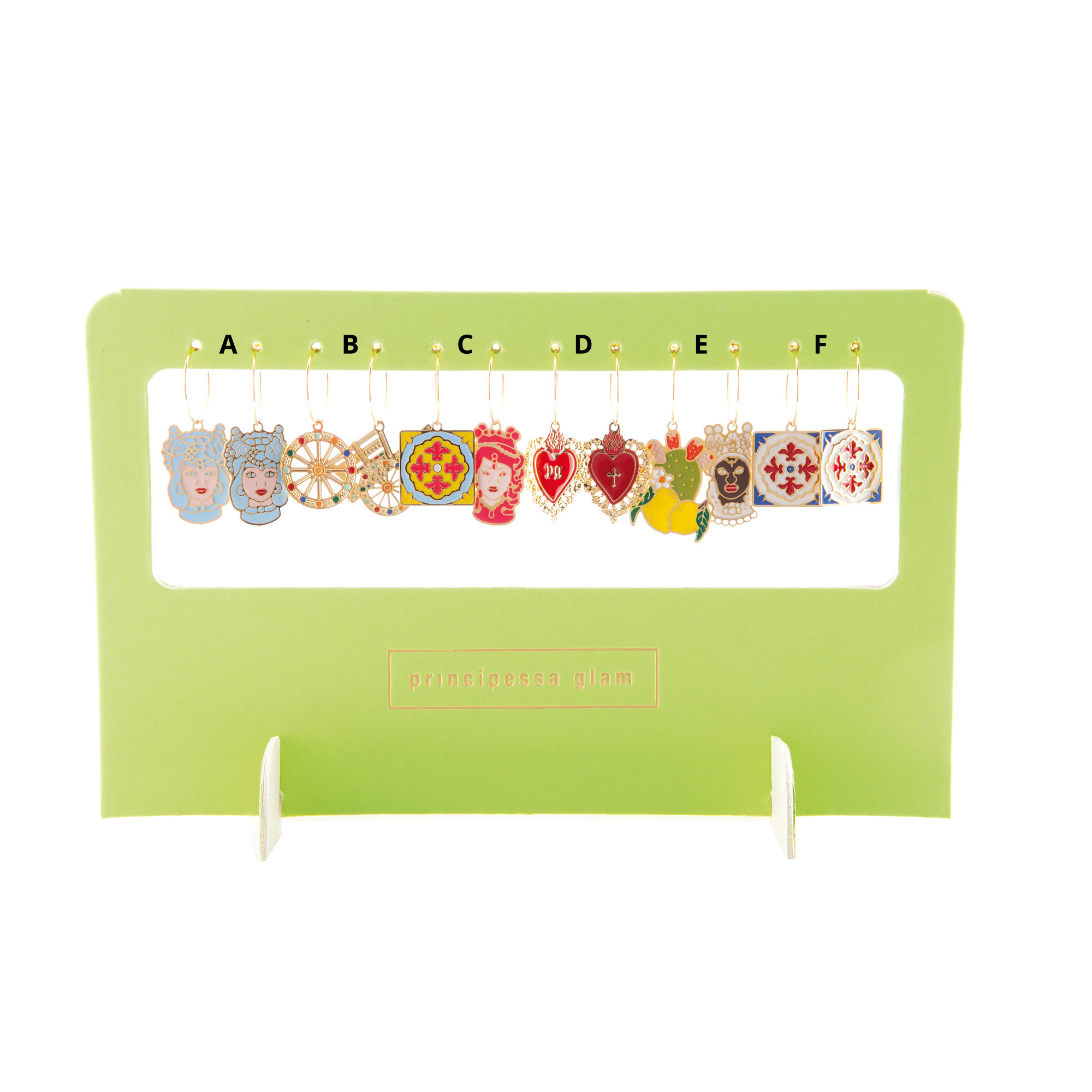 Gli orecchini Gilda Sicily PRINCIPESSA GLAM, รจ uno speciale kit di orecchini per la Primavra Estate, con dei bellissimi e divertenti charms, tutti come sempre rigorosamenti smaltati a mano.