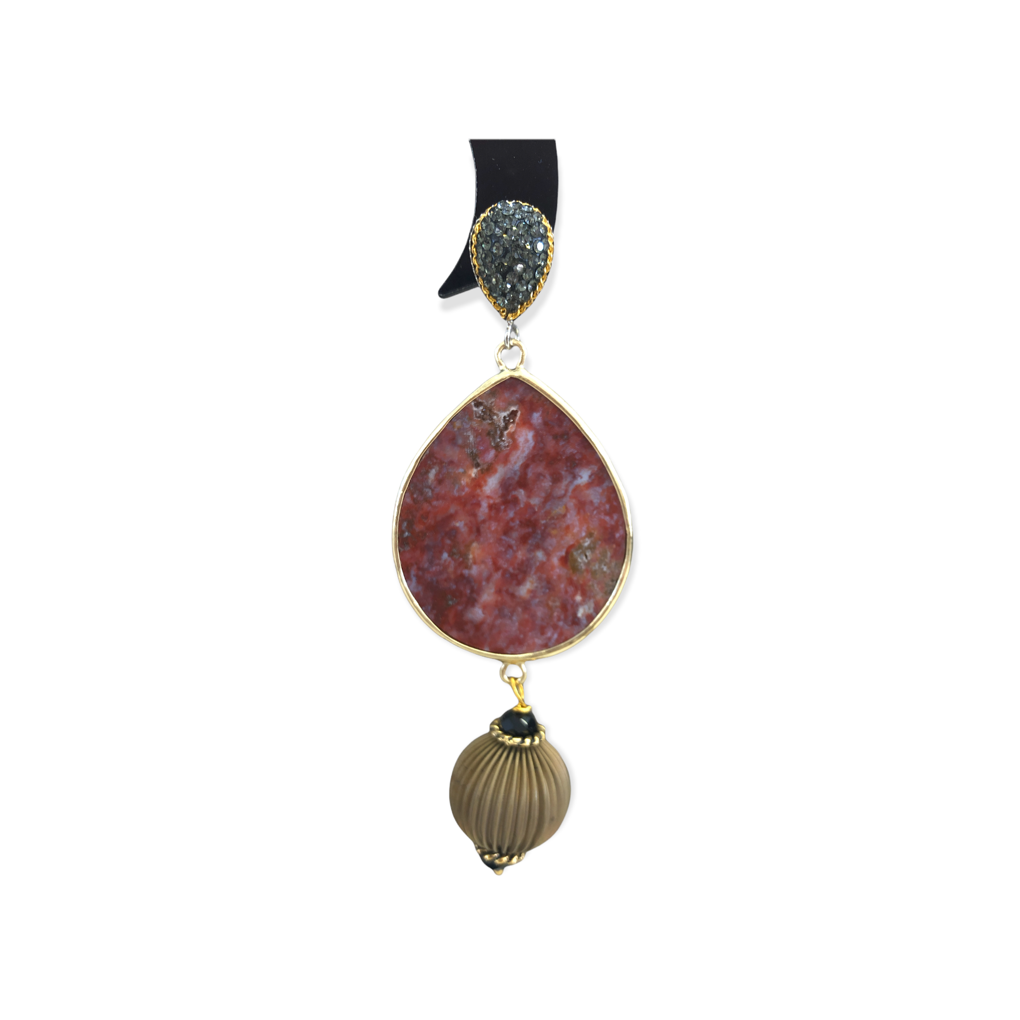 Gli Orecchini goccia lux ALMALA, sono orecchini in ottone, con pietra dura a forma di goccia e cristalli.