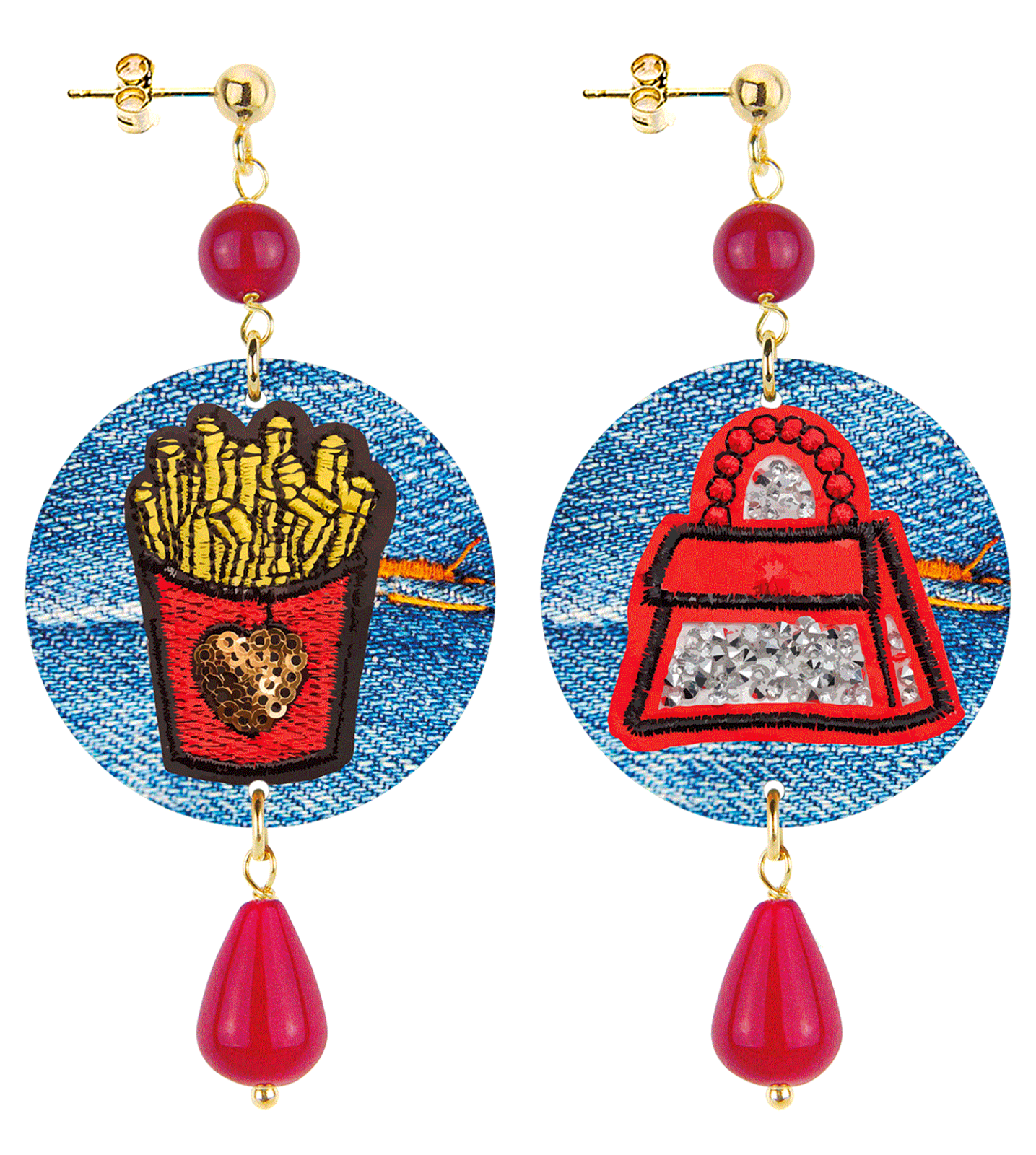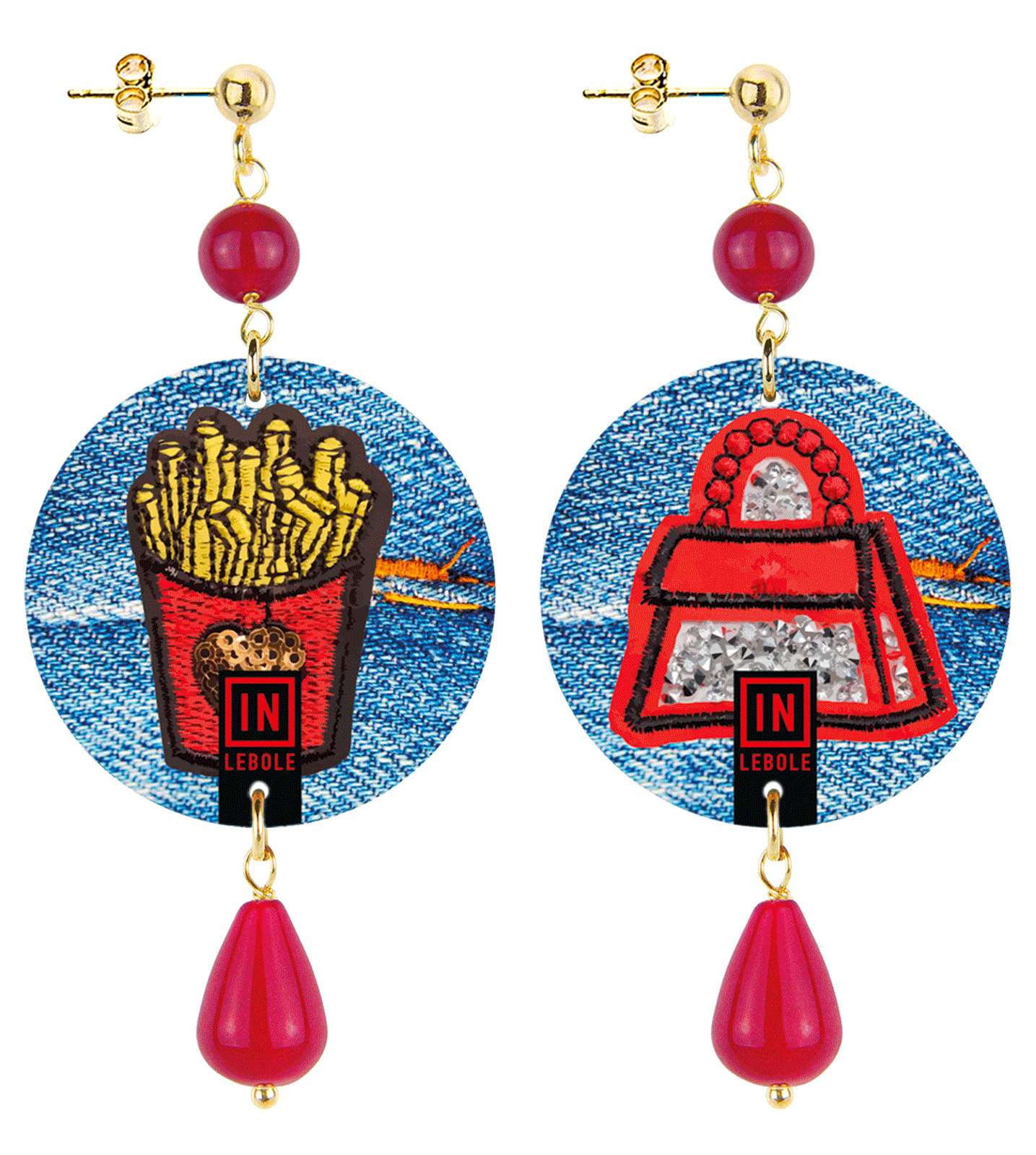 Gli orecchini della collezione The Circle di Lebole Maison sono realizzati con capsule piatte stampate su banda stagnata, montati in ottone galvanizzato oro e pietre naturali. Lโasimmetria รจ data dalle diverse immagini impresse nella capsula.