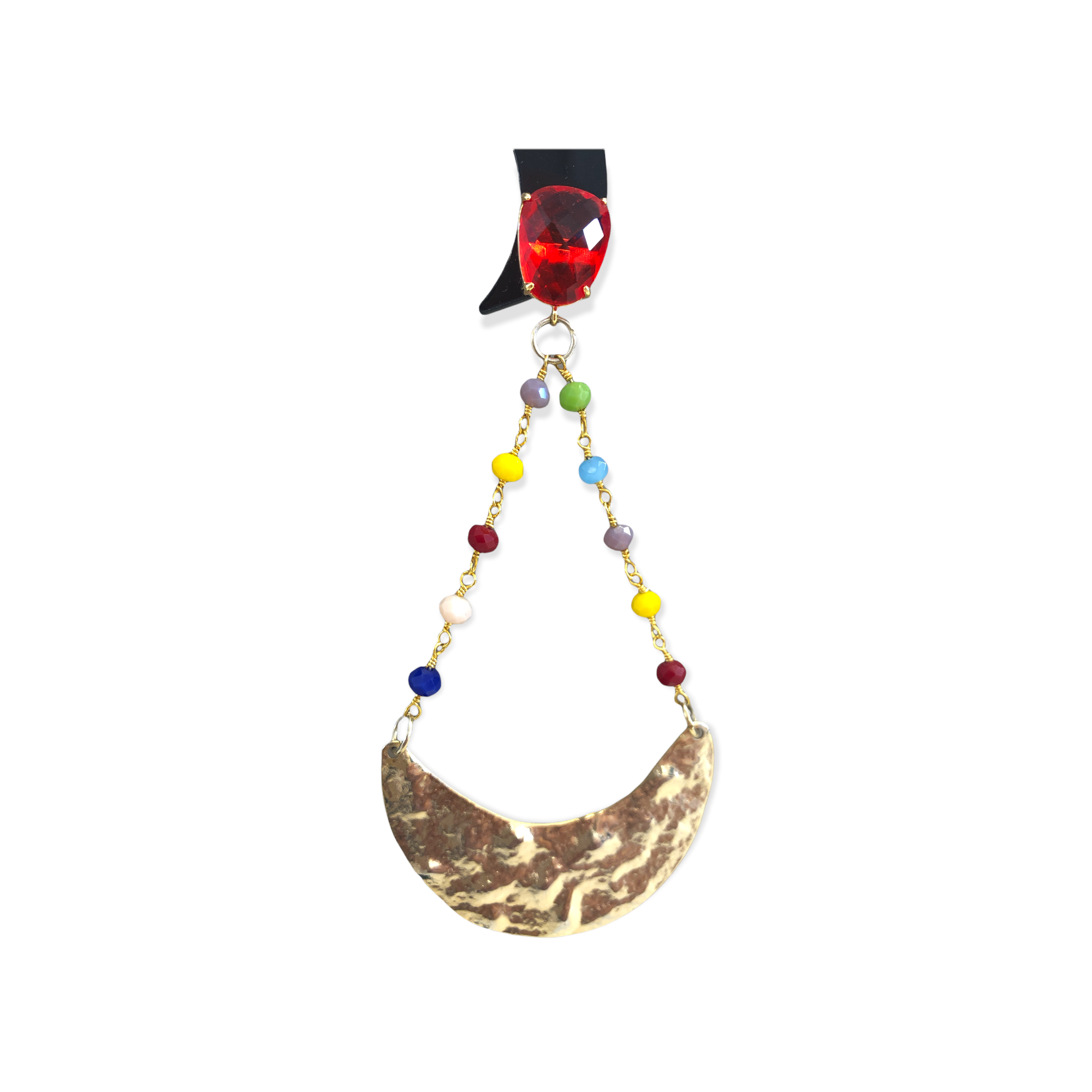 Orecchino gipsy Pendente in ottone lavorato a mezza luna Rifiniture con quarzi e cristalli Made in Italy