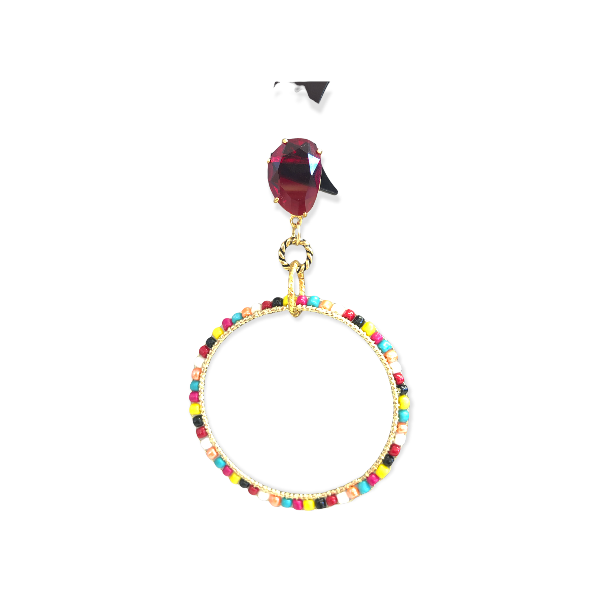 Orecchino multicolor cerchio e goccia in ottone con pietre dure e quarzi.