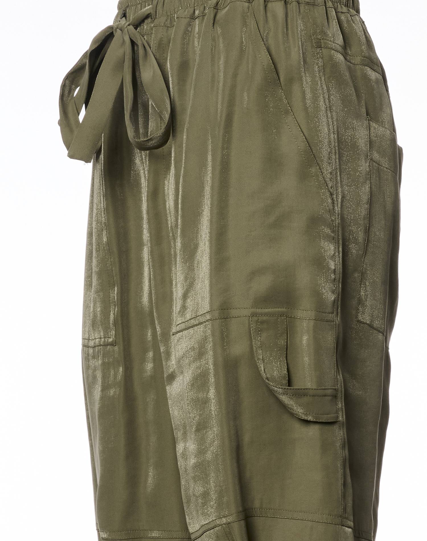 Pantaloni leggeri perfetti per la bella stagione, verdi, con laccio in vita. Modello “cargo”.
