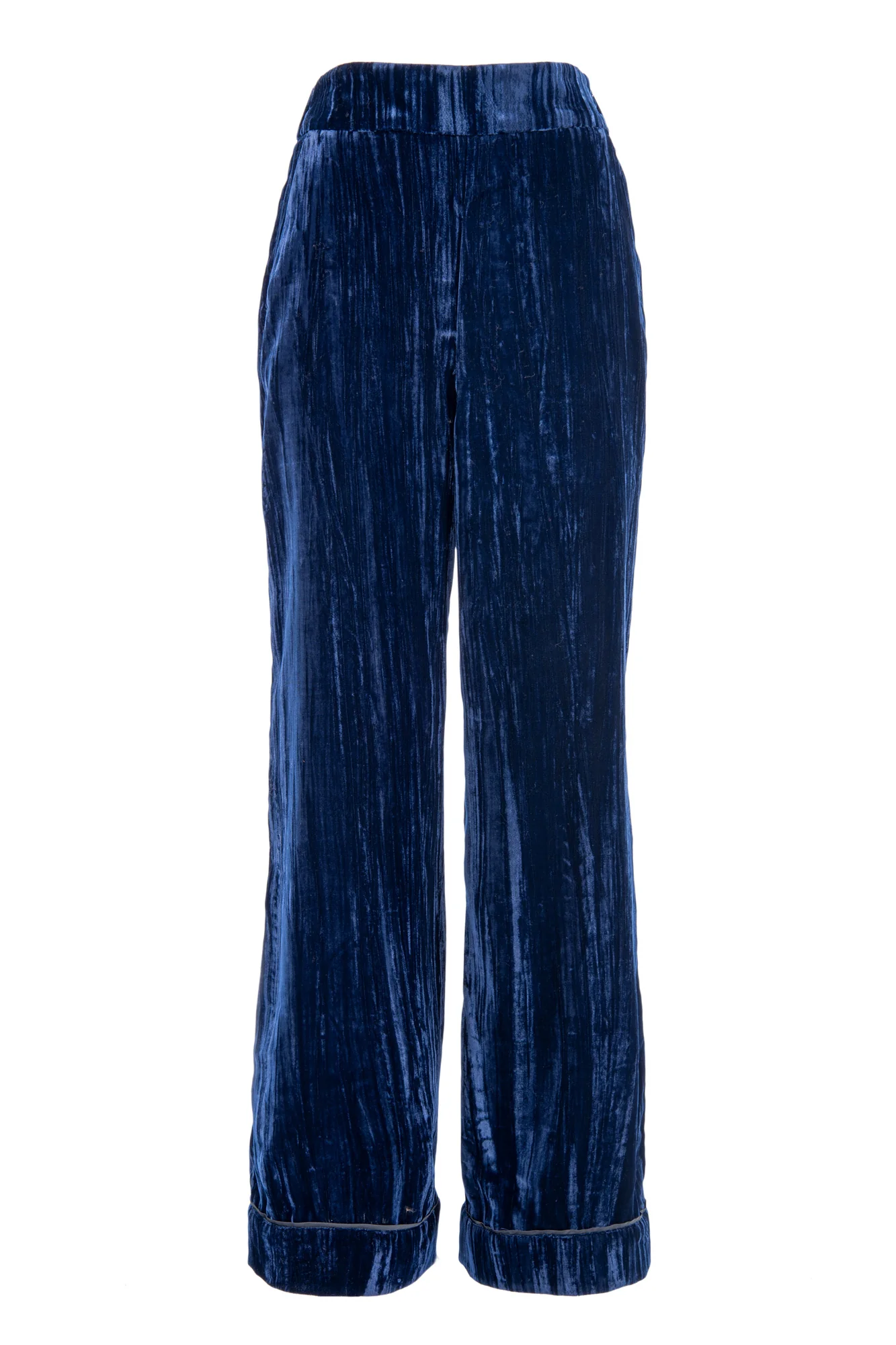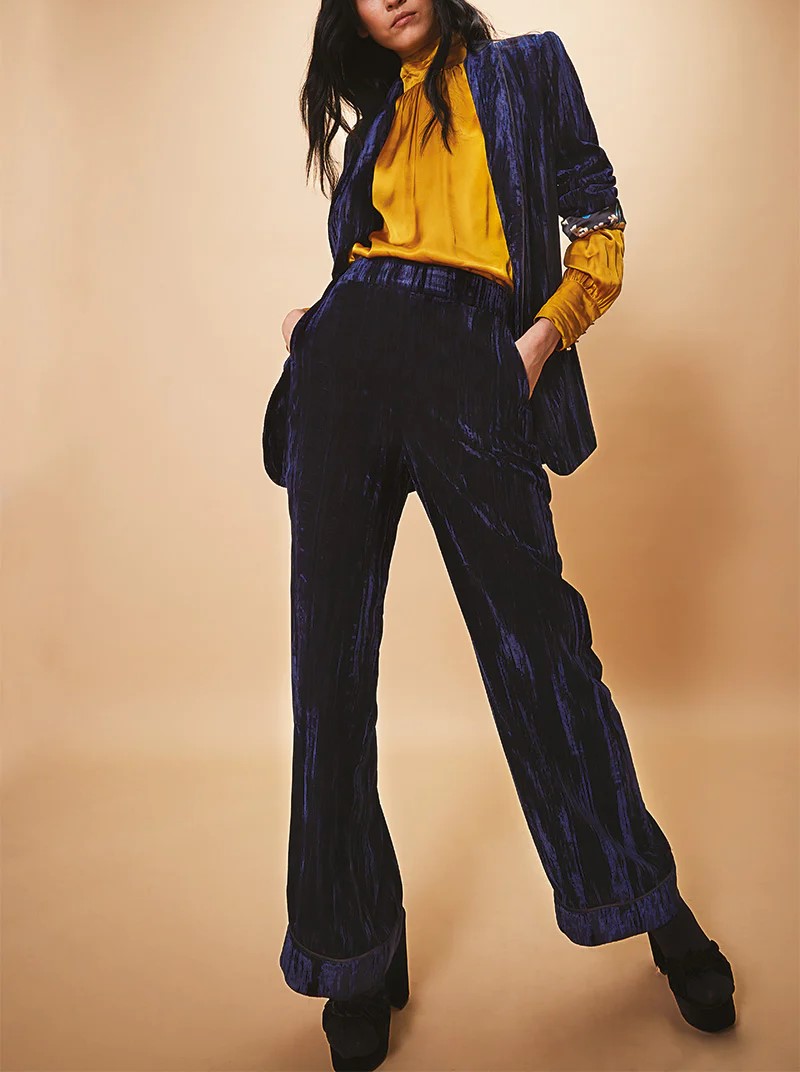 Il Pantalone Ercole NENETTE, รจ un pantalone palazzo in velluto, vita elasticizzata, tasche laterali, chiusura a lampo laterale, risvolto sul fondo con rifiniture in raso. Ideale con la sua giacca BRIANNA della collezione.