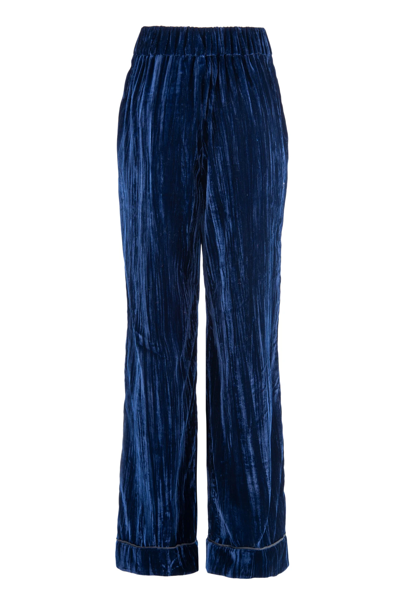 Pantalone palazzo in velluto Vita elasticizzata Tasche laterali Chiusura a lampo laterale Risvolto sul fondo con rifiniture in raso Ideale con la sua giacca BRIANNA della collezione. Composizione: 100% Poliestere