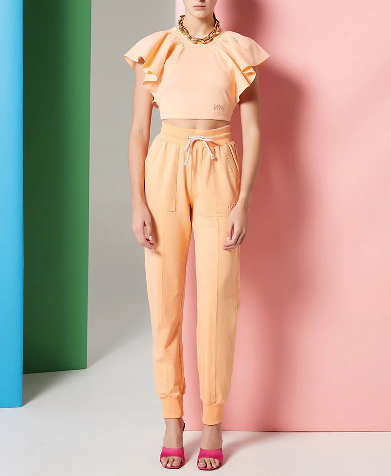 IL Pantalone Erriot NENETTE, รจ un pantalone jogger felpato, con coulisse e tasche sul davanti.