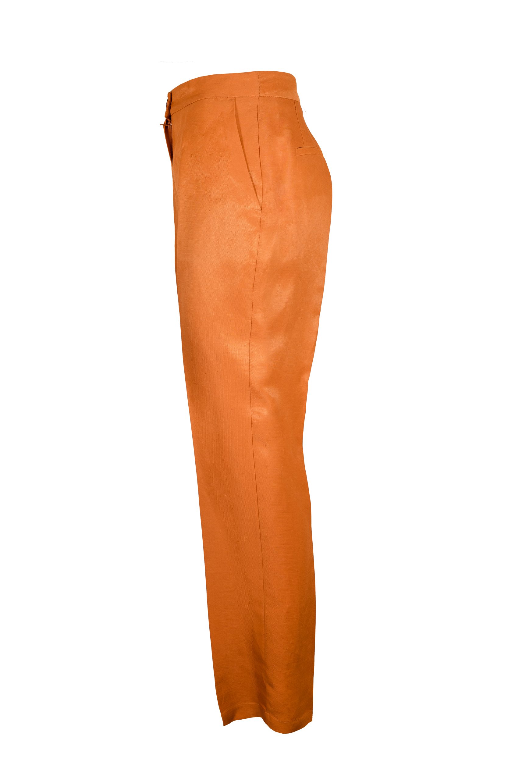 Pantalone chino in twill di lino viscosa lucido Tasche laterali e due a filo posteriori Chiusura con bottone e lampo Completo con la giacca BLEACH Composizione: 56% Lino 44% Viscosa Made in Italy