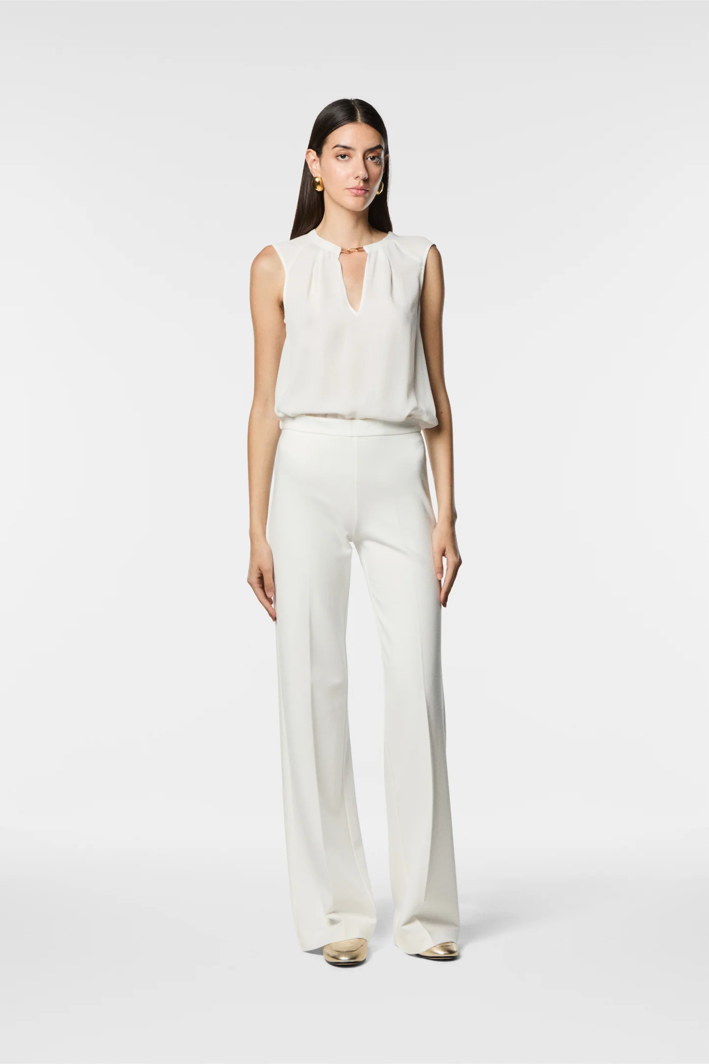 Pantalone gamba dritta tessuto punto milano Tessuto strutturato ma flessibile garantisce una vestibilitร perfetta e una silhouette raffinata, ideale per il lavoro o occasioni formale Completo con la giacca BURGOS Composizione: 65% Viscosa 30% Nylon 5% Elastan