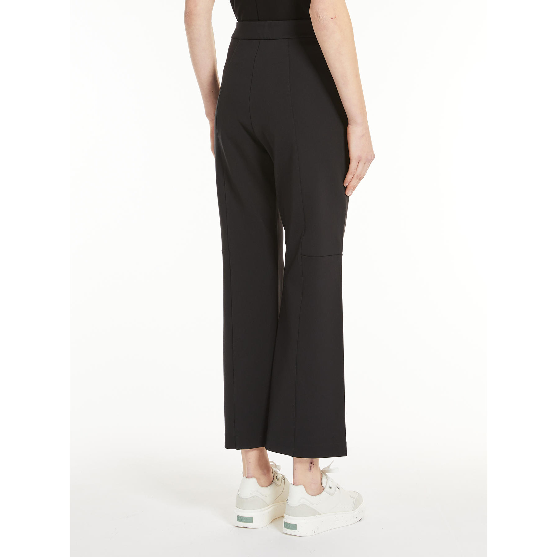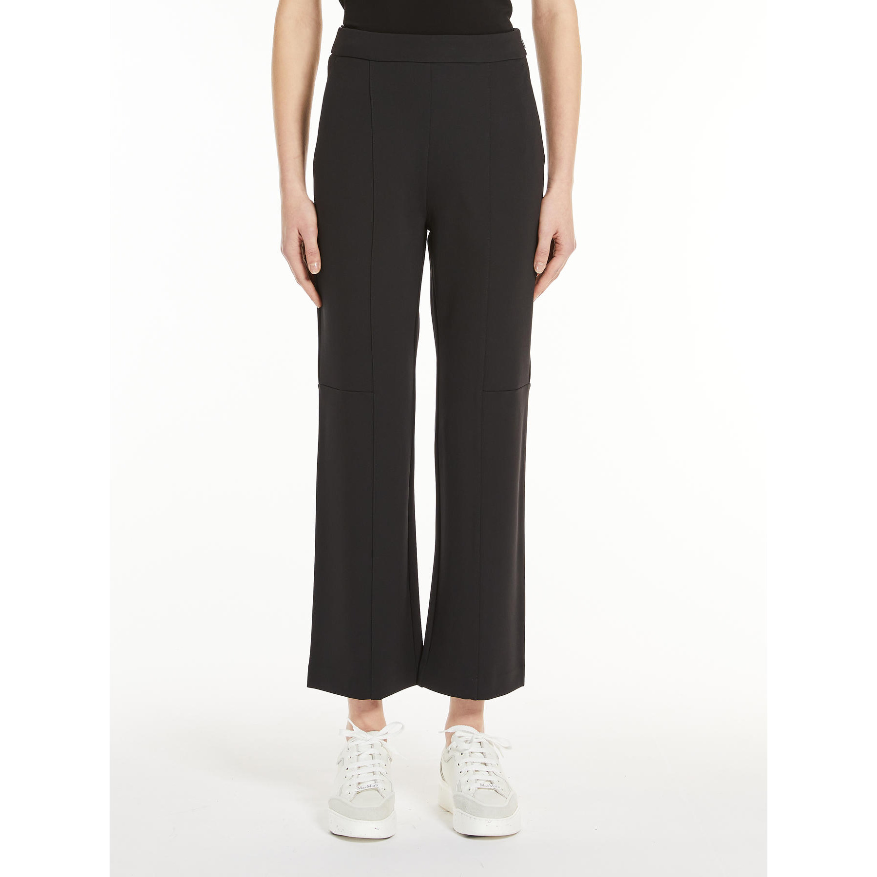 Il Pantalone Glasgow MAX MARA Leisure, รจ un pantalone in morbido jersey di viscosa, lavorato a punto Milano, con cintone piatto in vita. La linea flair leggermente svasata al fondo รจ impreziosita dal gioco di nervature sul davanti e dai tagli laterali all’altezza del ginocchio. Chiusura con zip nascosta sul fianco.