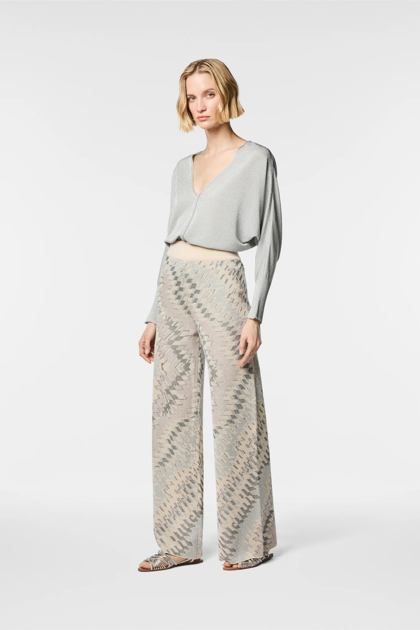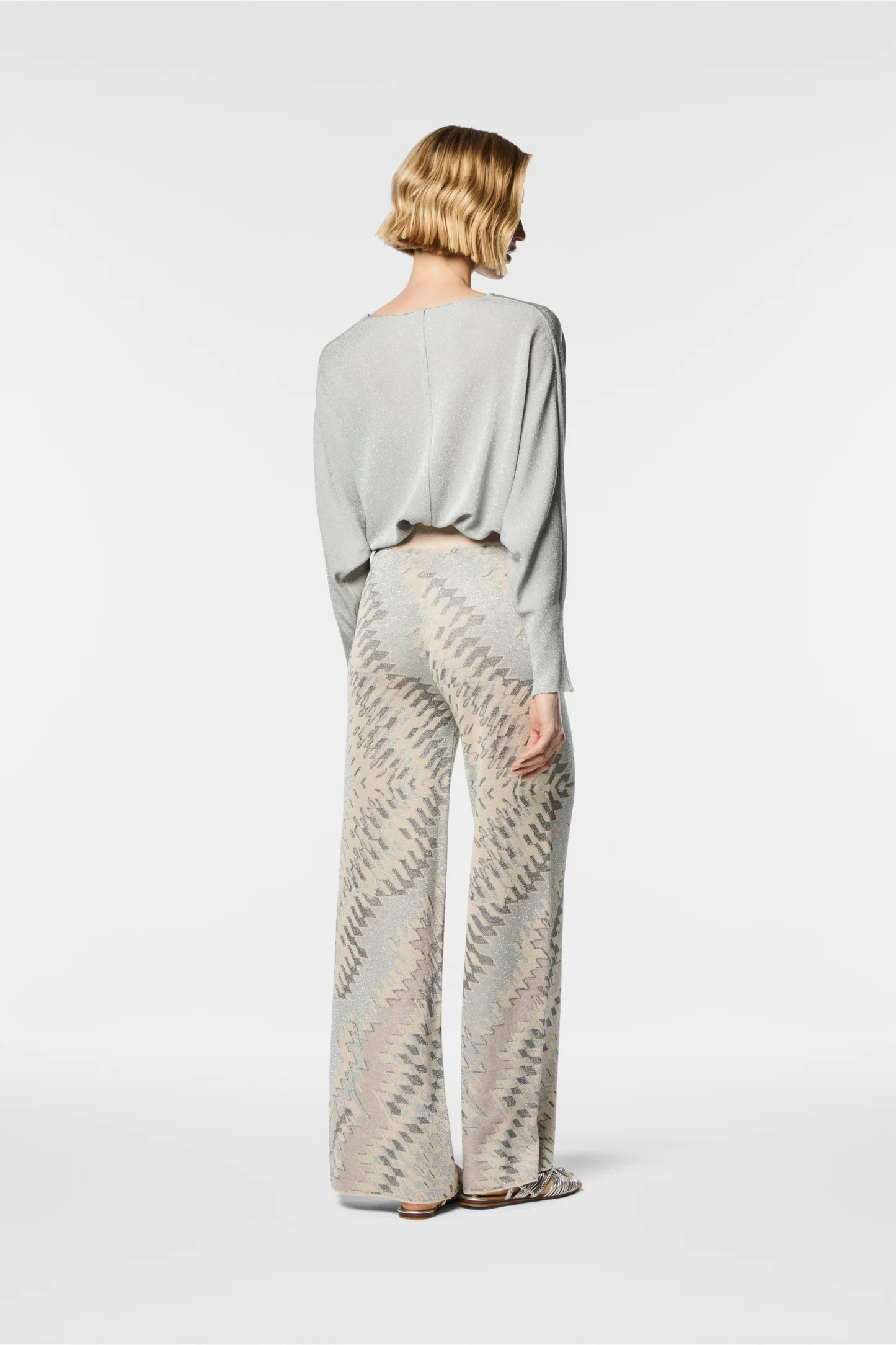 Pantalone a gamba larga in maglia stampata onda Completo con la giacca Leila Composizione: 75% Viscosa 25% Poliestere