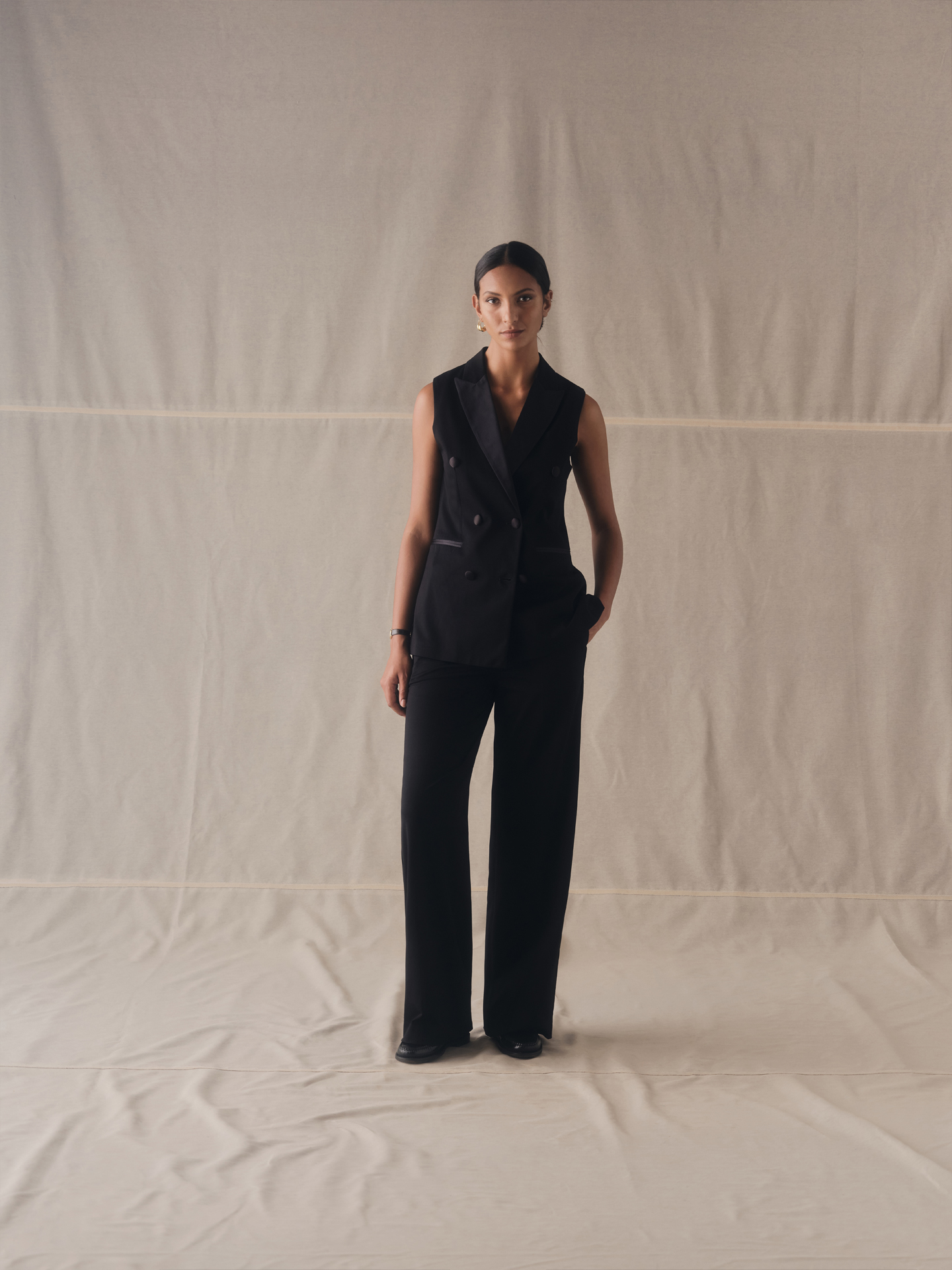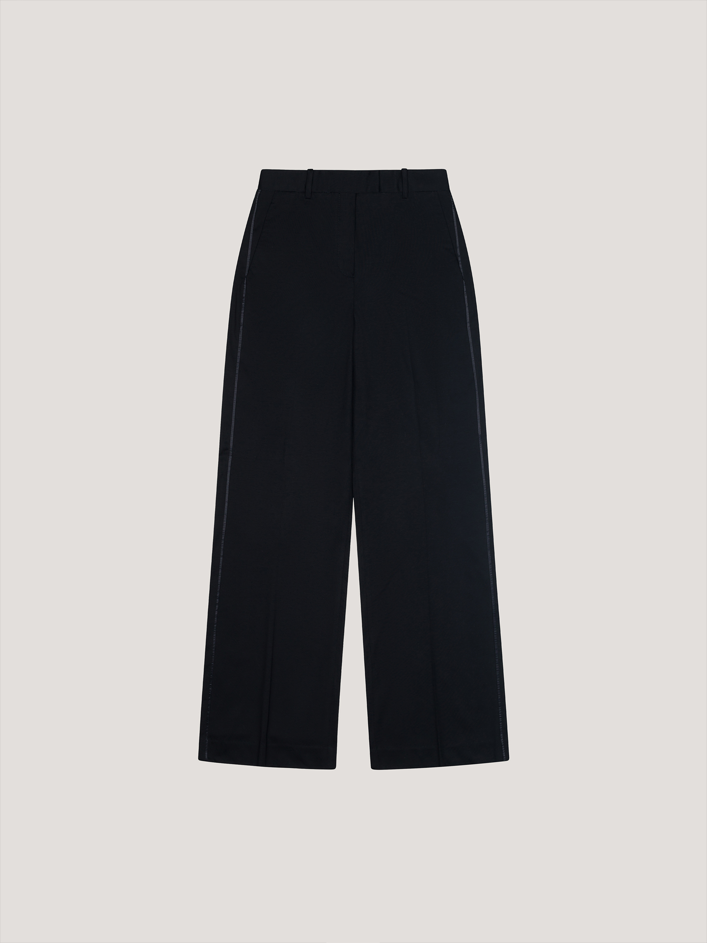 Il Pantalone vita alta CIRCOLO 1901, รจ un pantalone in Jersey Filo di Scozia tinto light. Chiusura un bottone interno con zip e gancio interno, due tasche laterali e una posteriore a filo con bottone. Completo con la giacca a gilet FD3034.