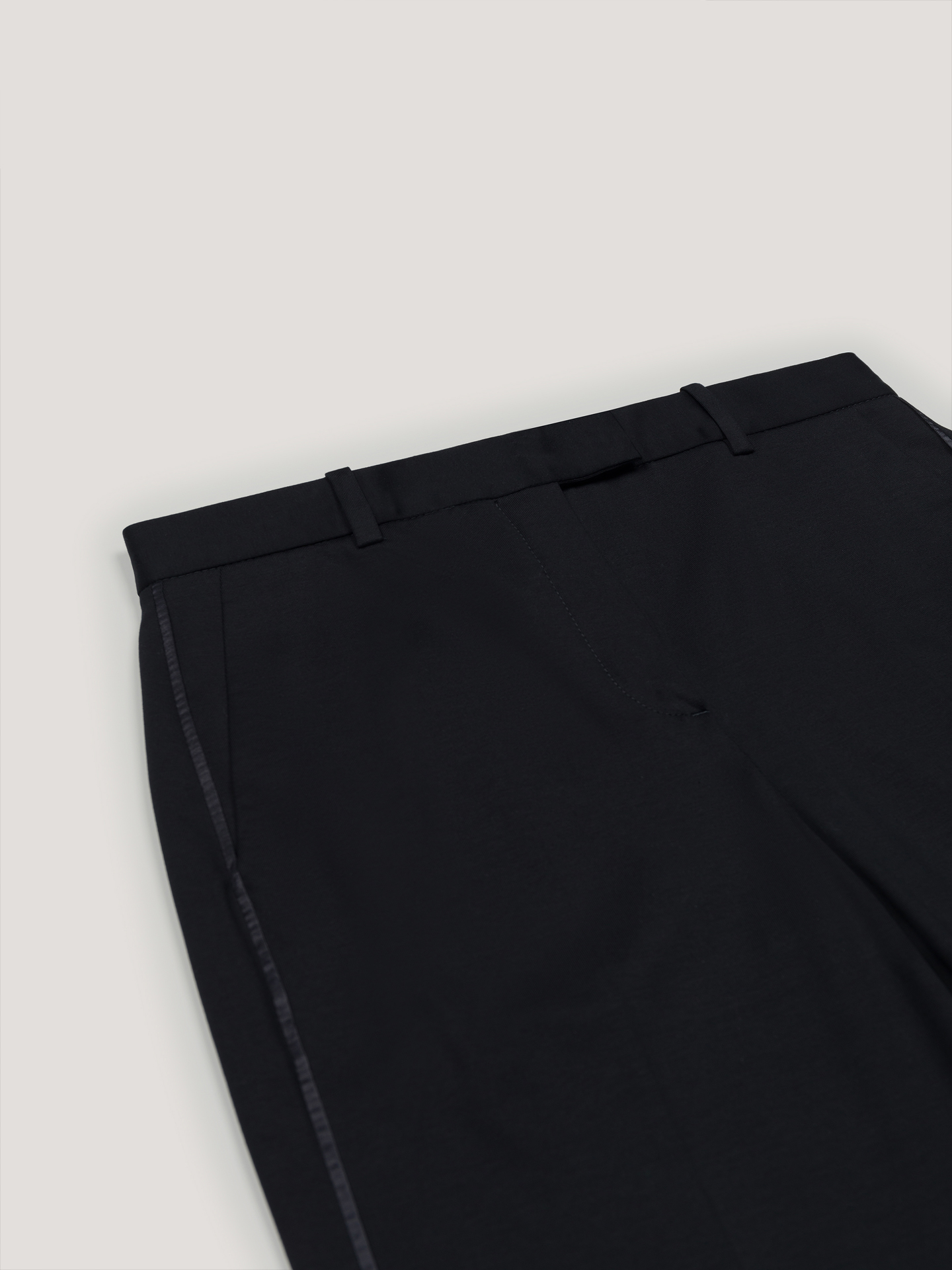 Pantalone in Jersey Filo di Scozia tinto light Chiusura un bottone interno con zip e gancio interno Due tasche laterali e una posteriore a filo con bottone Pantalone: lunghezza 109 cm (taglia 40) Materiale: Jersey Composizione: 94% Cotone โ 6% Elastan